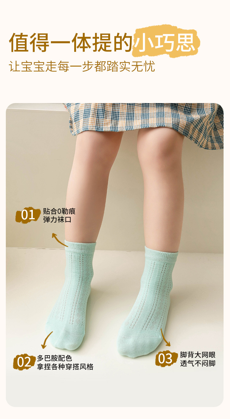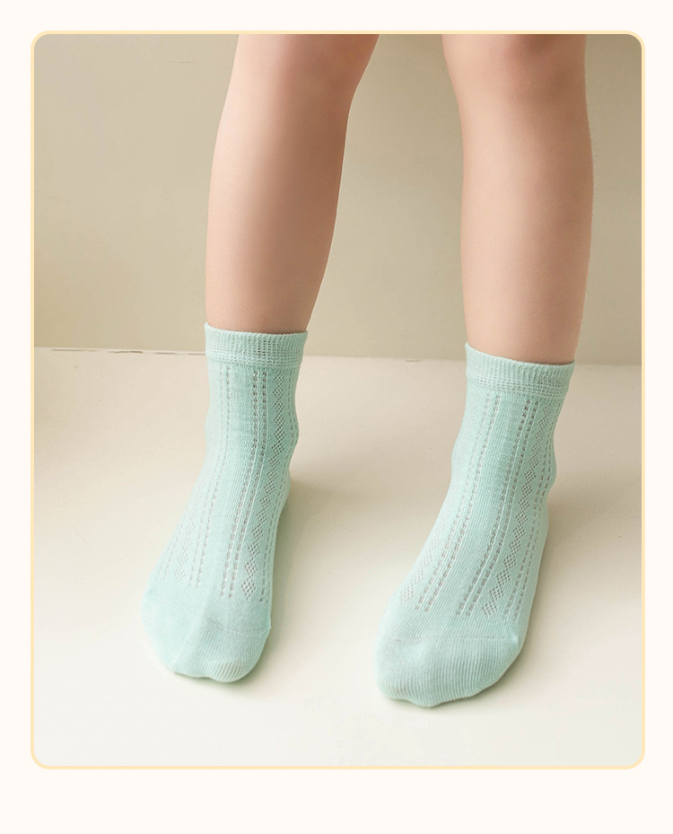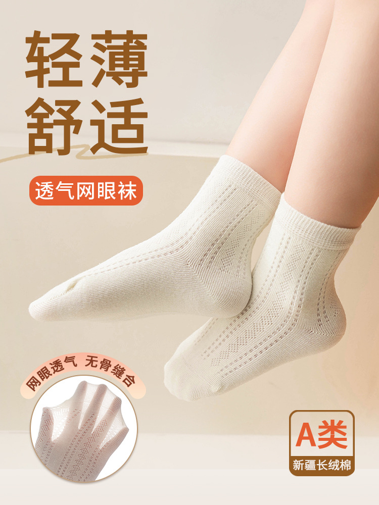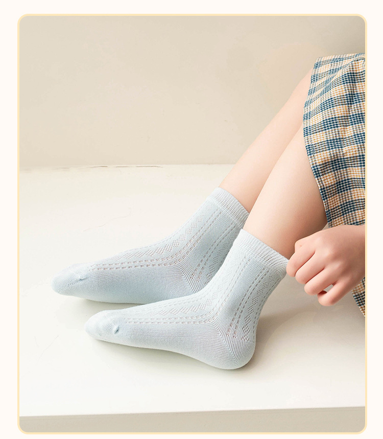 어린이 양말 여름 얇은 메쉬 땀 흡수성 통기성 단색 뼈없는 손 재봉 클래스 빗질면 중간 종아리 길이 양말