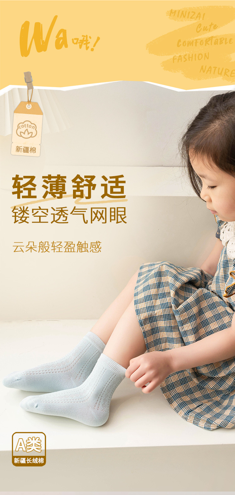 어린이 양말 여름 얇은 메쉬 땀 흡수성 통기성 단색 뼈없는 손 재봉 클래스 빗질면 중간 종아리 길이 양말스토어 가기