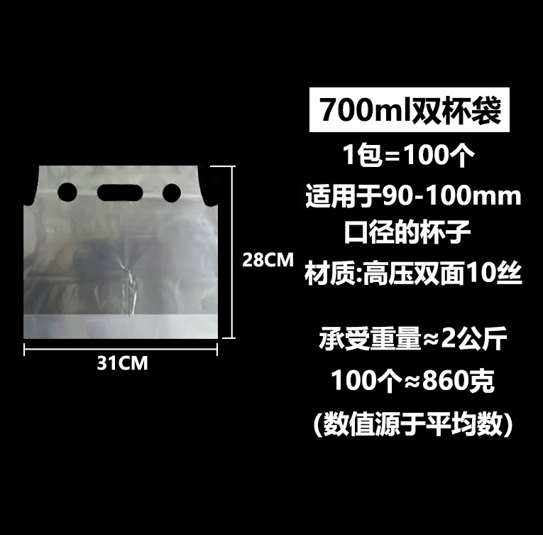 • 700ml 더블 컵 밀크티 백 31x28cm, 고투명 고압 10 실크 농축, 7-8CM
