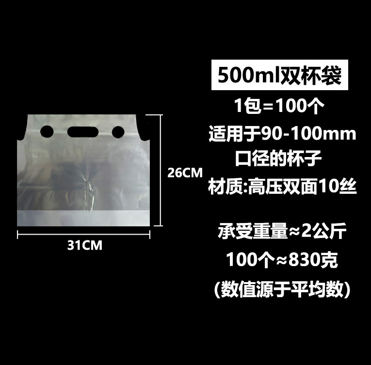 • 500ml 더블 컵 밀크티 백 31x26cm, 고투명 고압 10 실크 농축, 7-8CM