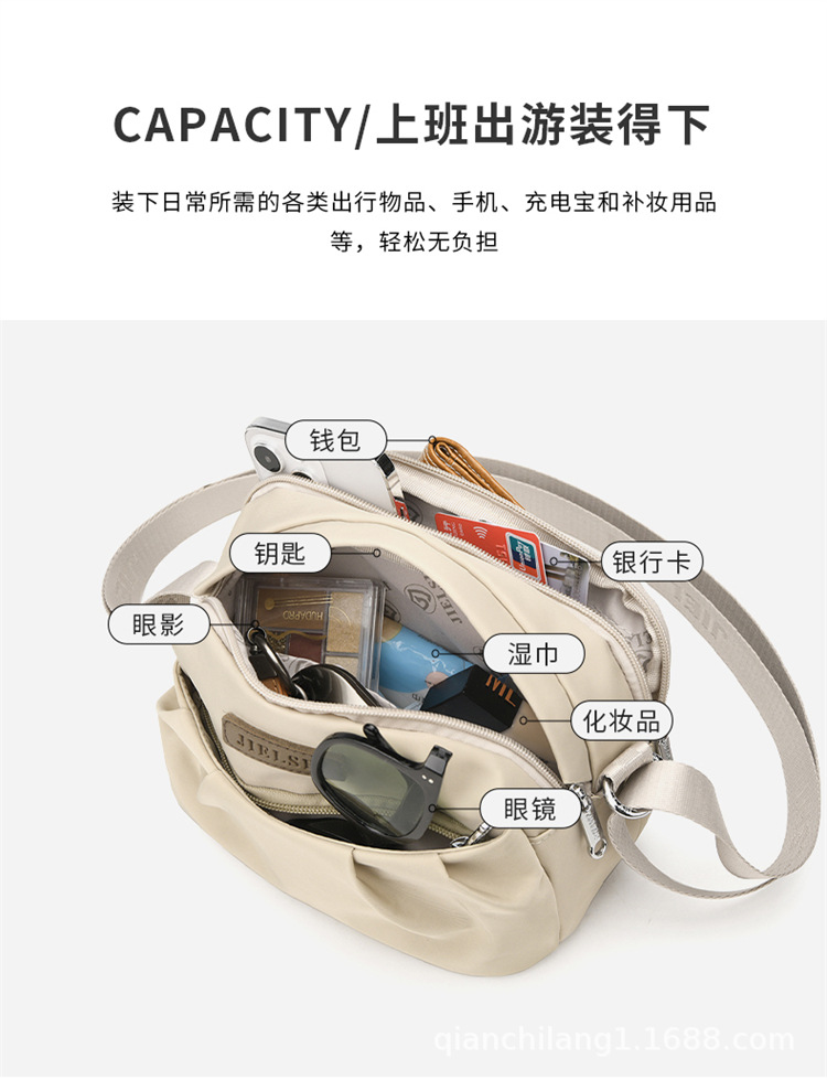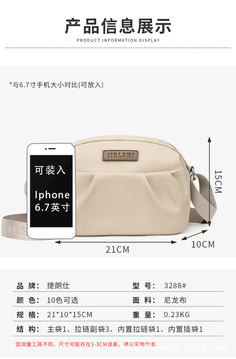 Jielangshi 2024 새로운 주름 가방 옥스포드 천 가방 나일론 가방 숄더백 메신저 가방 휴대 전화 가방 크로스 바디 여성용 가방스토어 가기