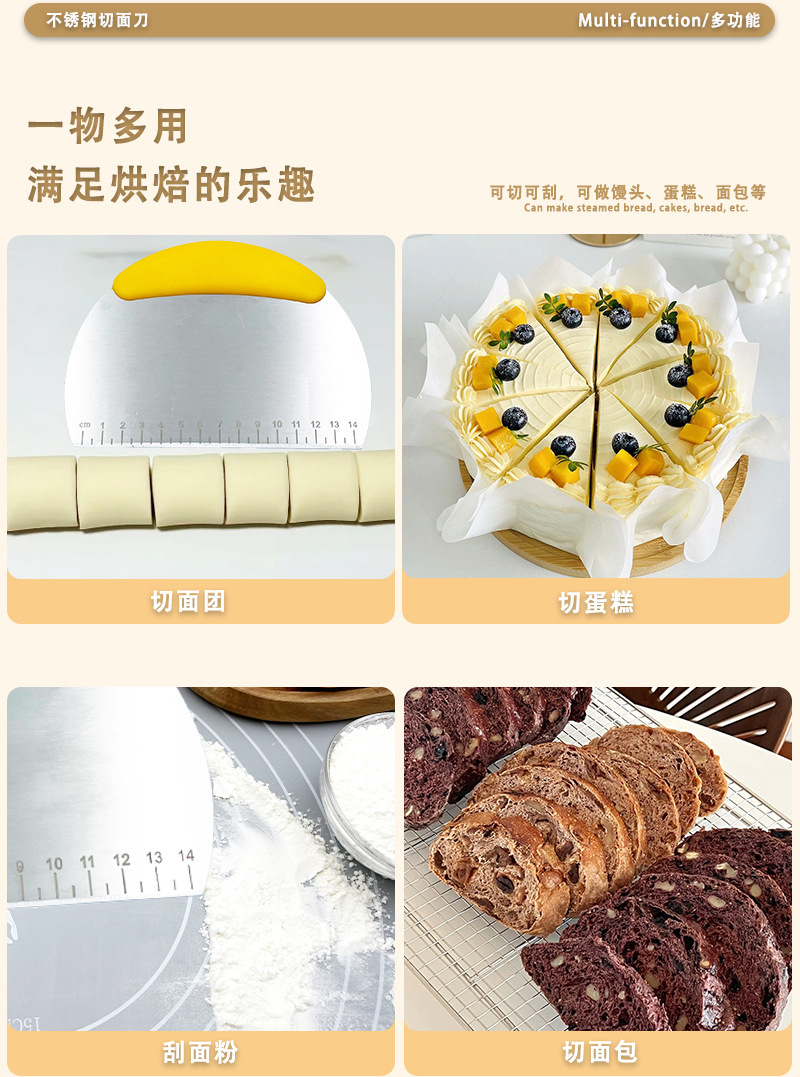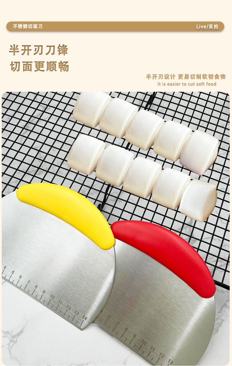 새로운 스테인레스 스틸 국수 나이프 주방 고온 저항 베이킹 도구 스크레이퍼 밀가루 절단 손 롤링 핀 국수 나이프