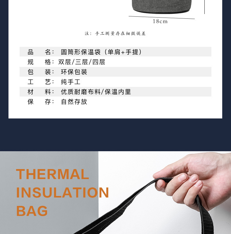 라운드 절연 도시락 가방 절연 가방 알루미늄 호일 휴대용 점심 가방 작업 점심 단열 가방 공장