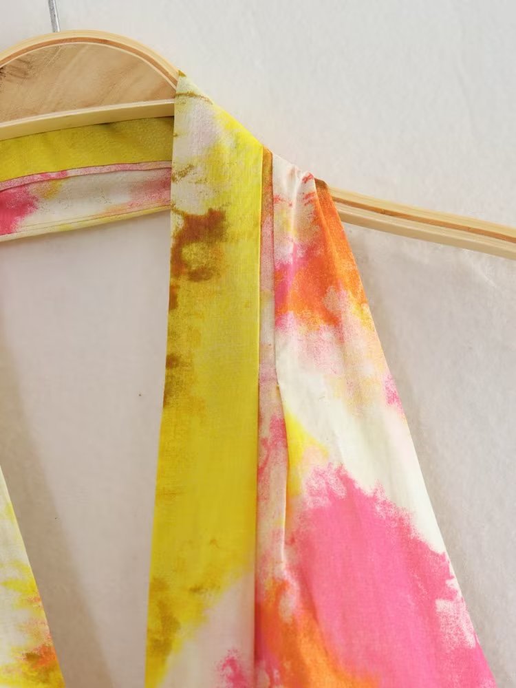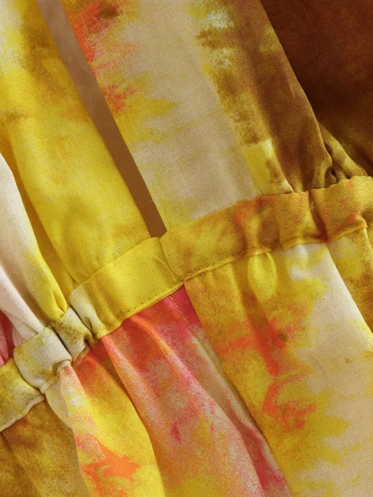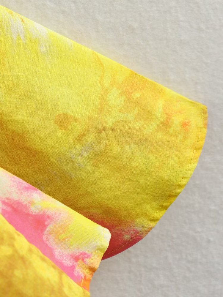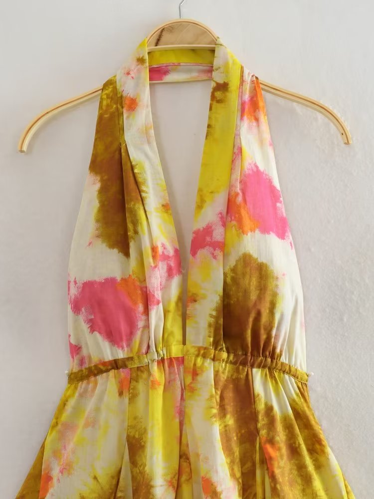 2023夏季ins女装黄印花短款挂脖连衣裙
