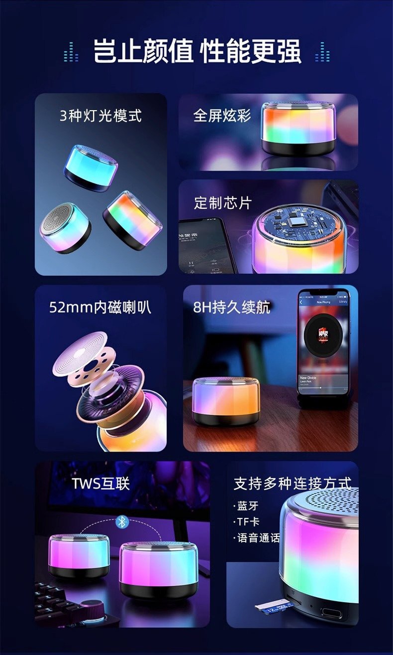 무선 블루투스 차량용 스피커, 멋진 야외 조명 효과, 고음질 서브우퍼, 파노라마 서라운드 사운드스토어 가기