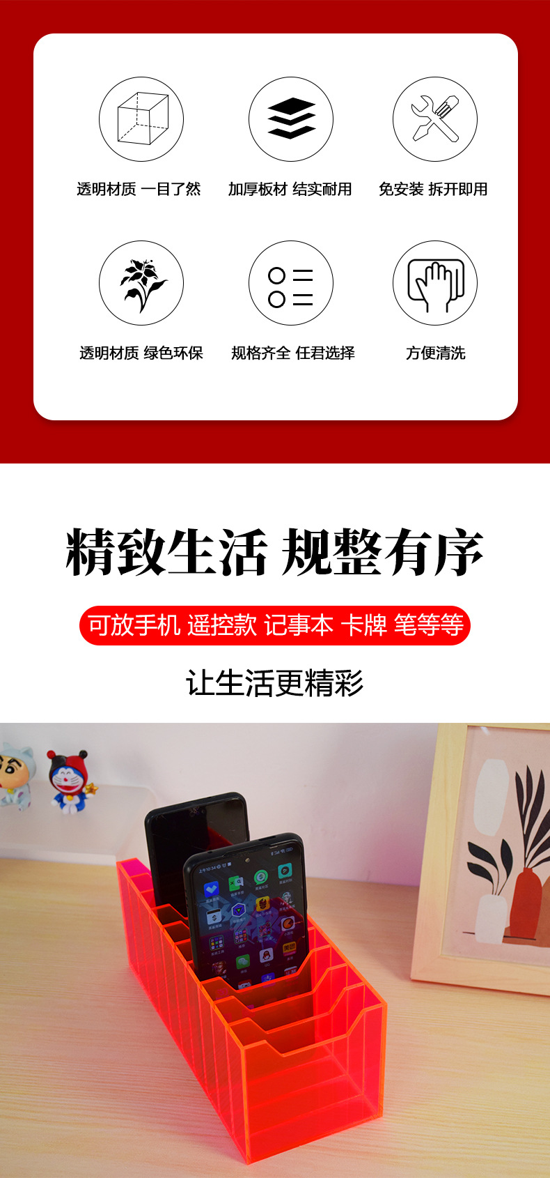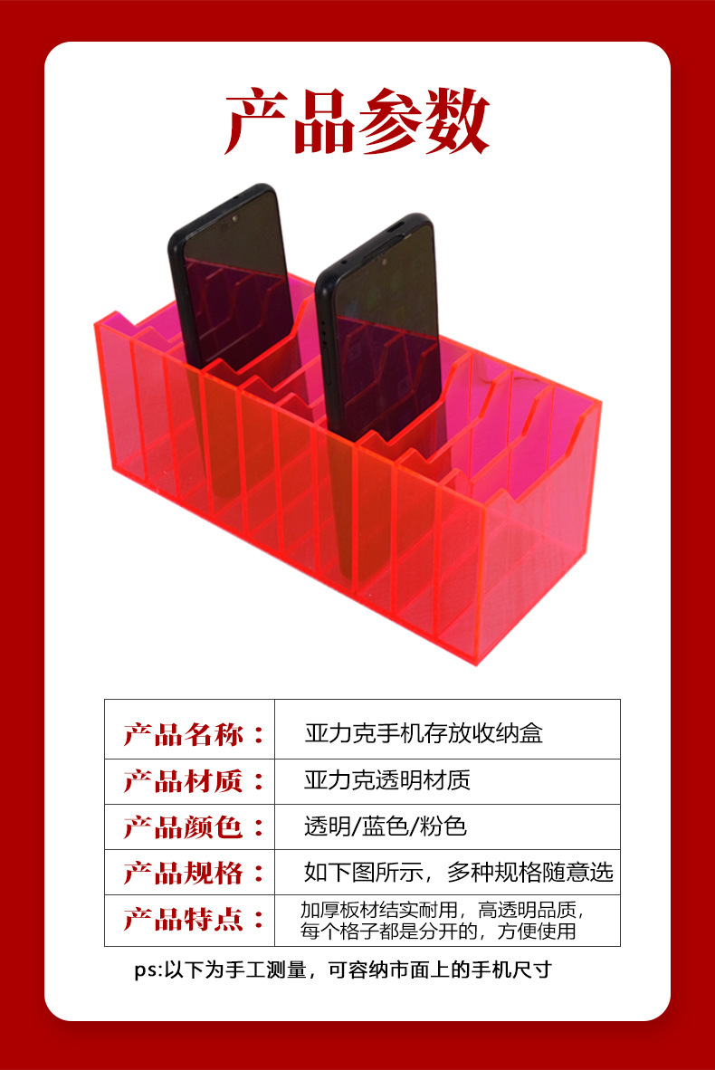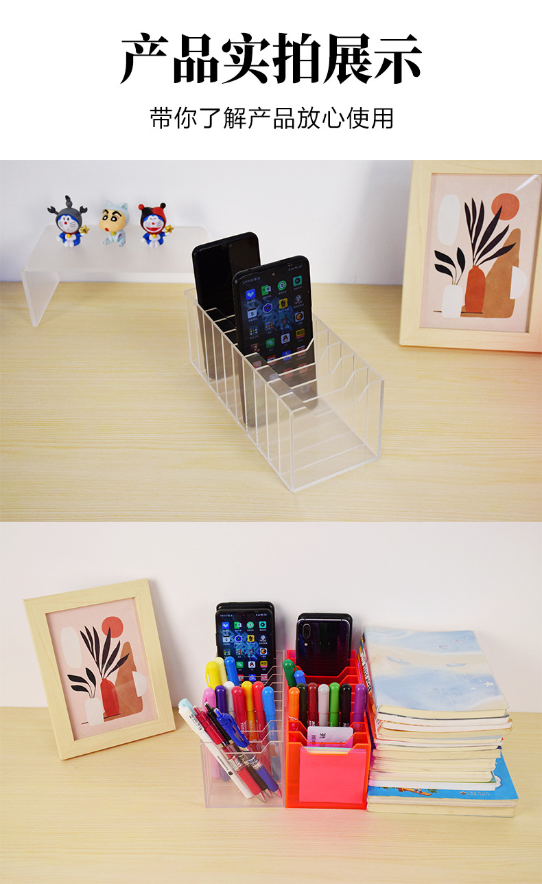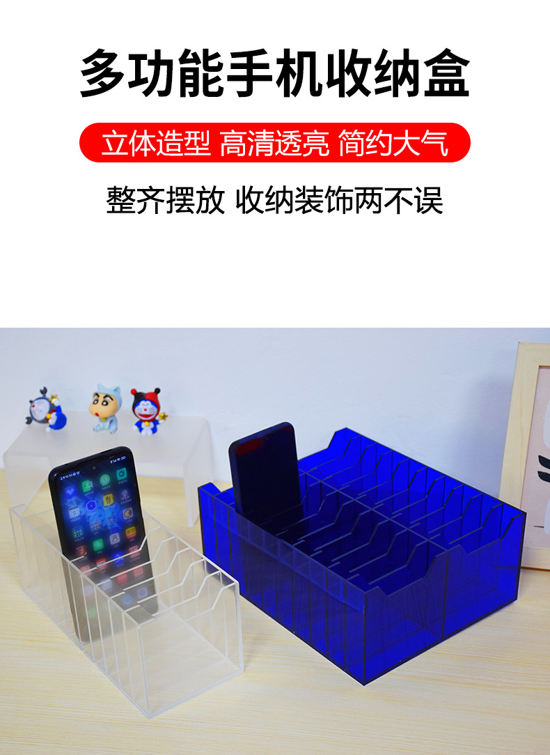 두꺼운 투명 아크릴 휴대 전화 저장 상자 데스크탑 스토리지 랙 카드 사무실 회의 테이블 스토리지