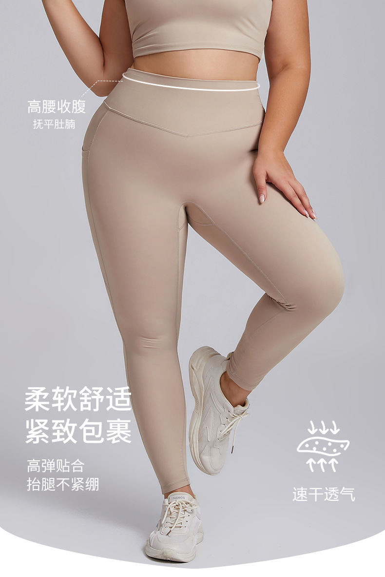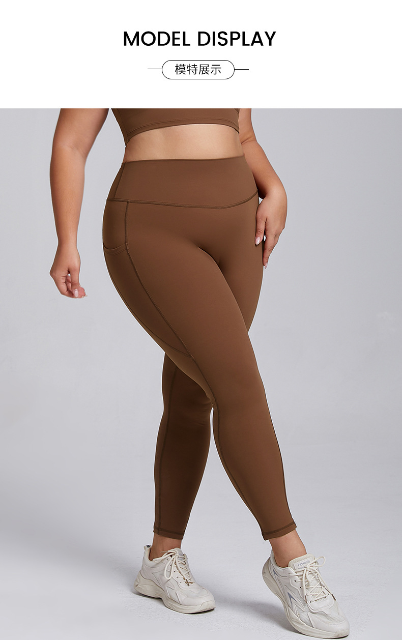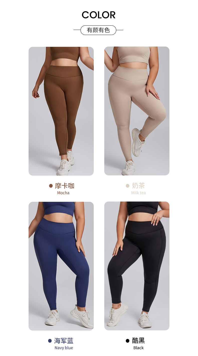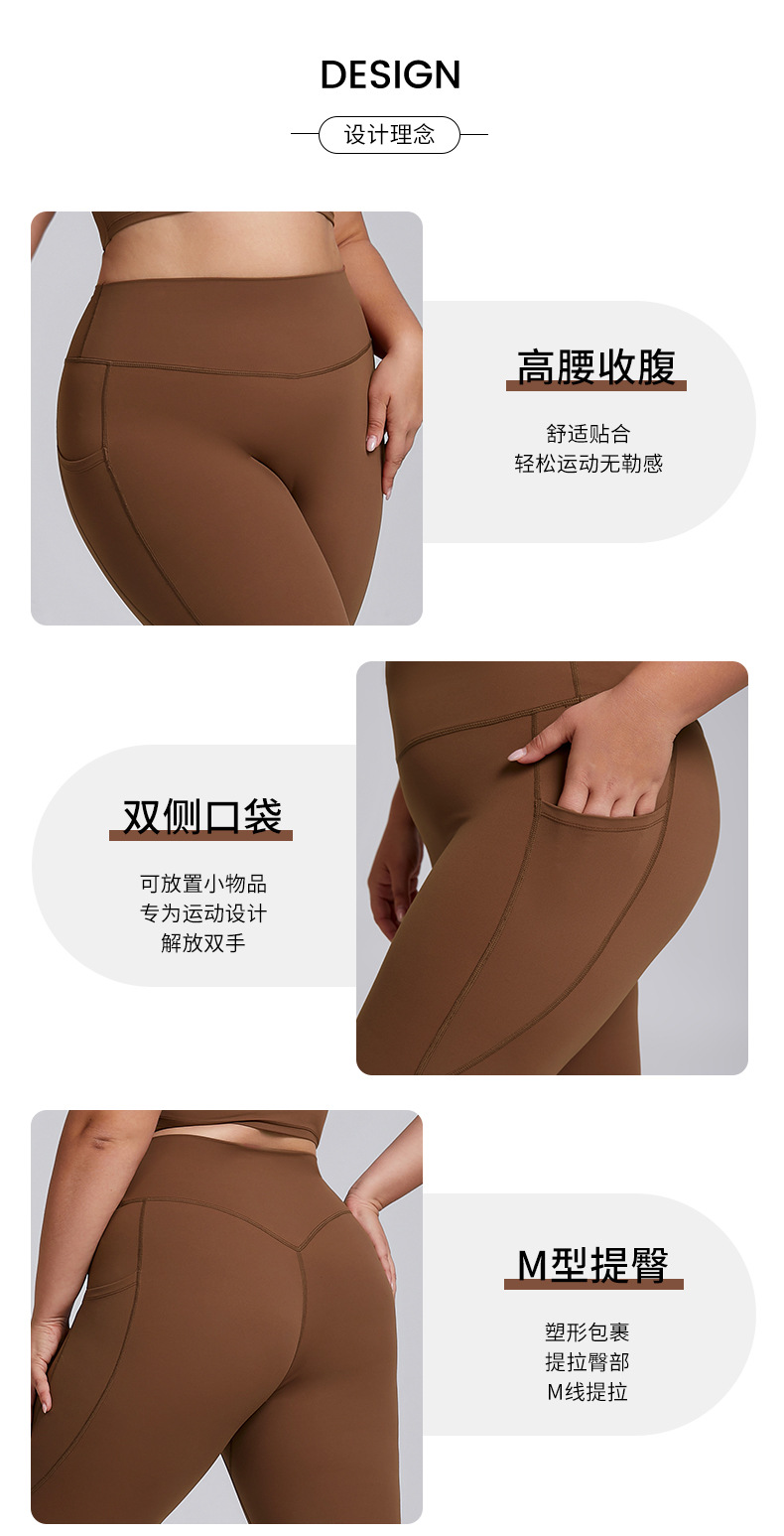 크로스 보더 플러스 사이즈 하이 허리 피트니스 바지 여성 누드 엉덩이 리프팅 포켓 타이트한 요가 바지 달리기 운동 스포츠 바지