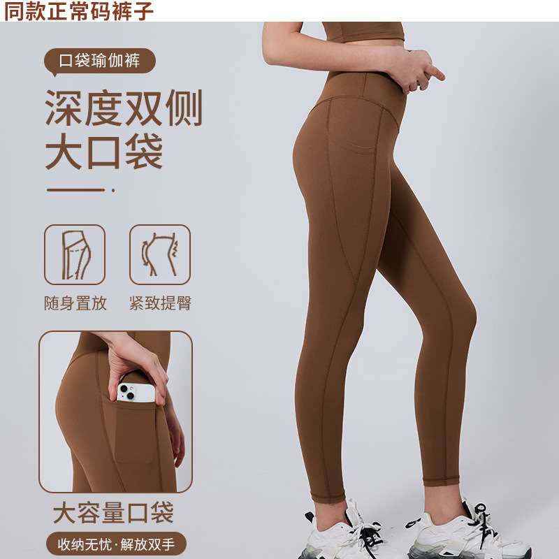 크로스 보더 플러스 사이즈 하이 허리 피트니스 바지 여성 누드 엉덩이 리프팅 포켓 타이트한 요가 바지 달리기 운동 스포츠 바지스토어 가기