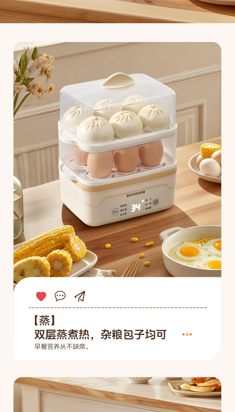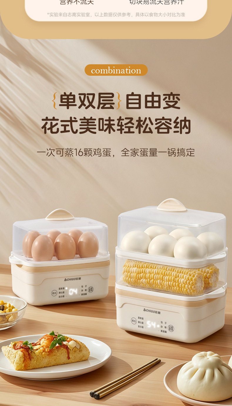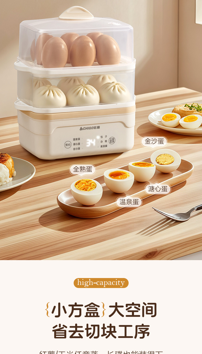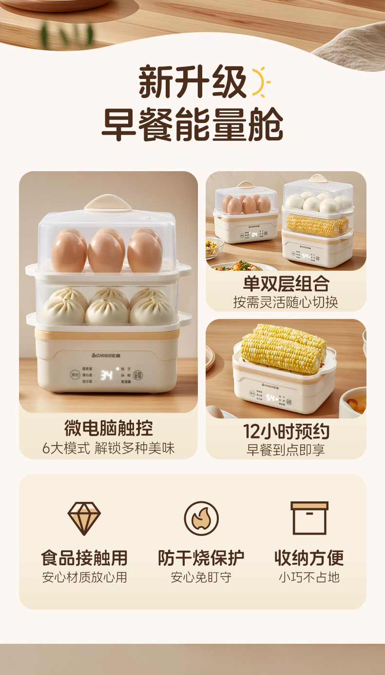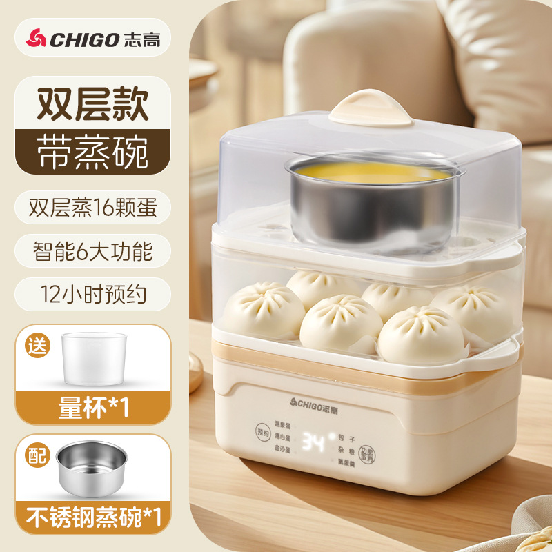 계란찜기 자동 전원 차단 기능, 가정용 소형 1인용 2단 다기능 계란찜기, 계란삶기 기계, 아침 식사 필수템