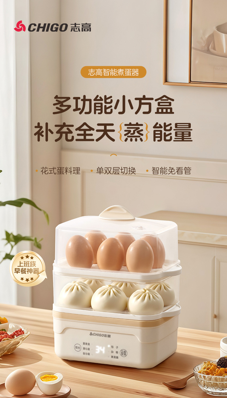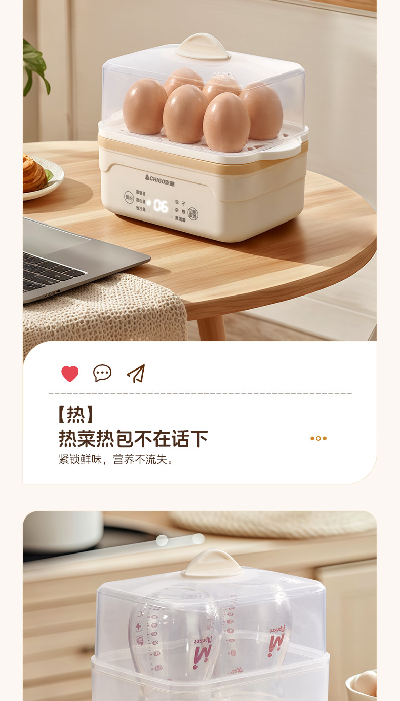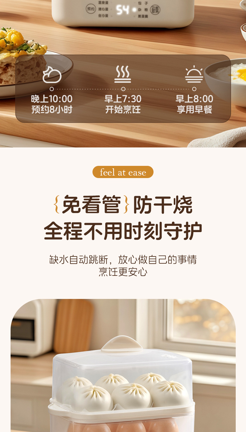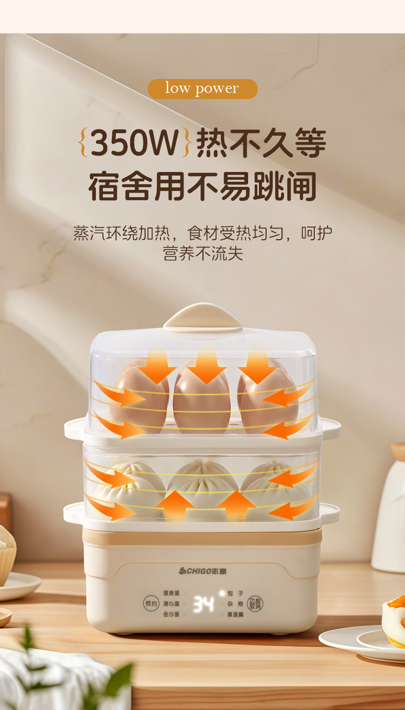 계란찜기 자동 전원 차단 기능, 가정용 소형 1인용 2단 다기능 계란찜기, 계란삶기 기계, 아침 식사 필수템