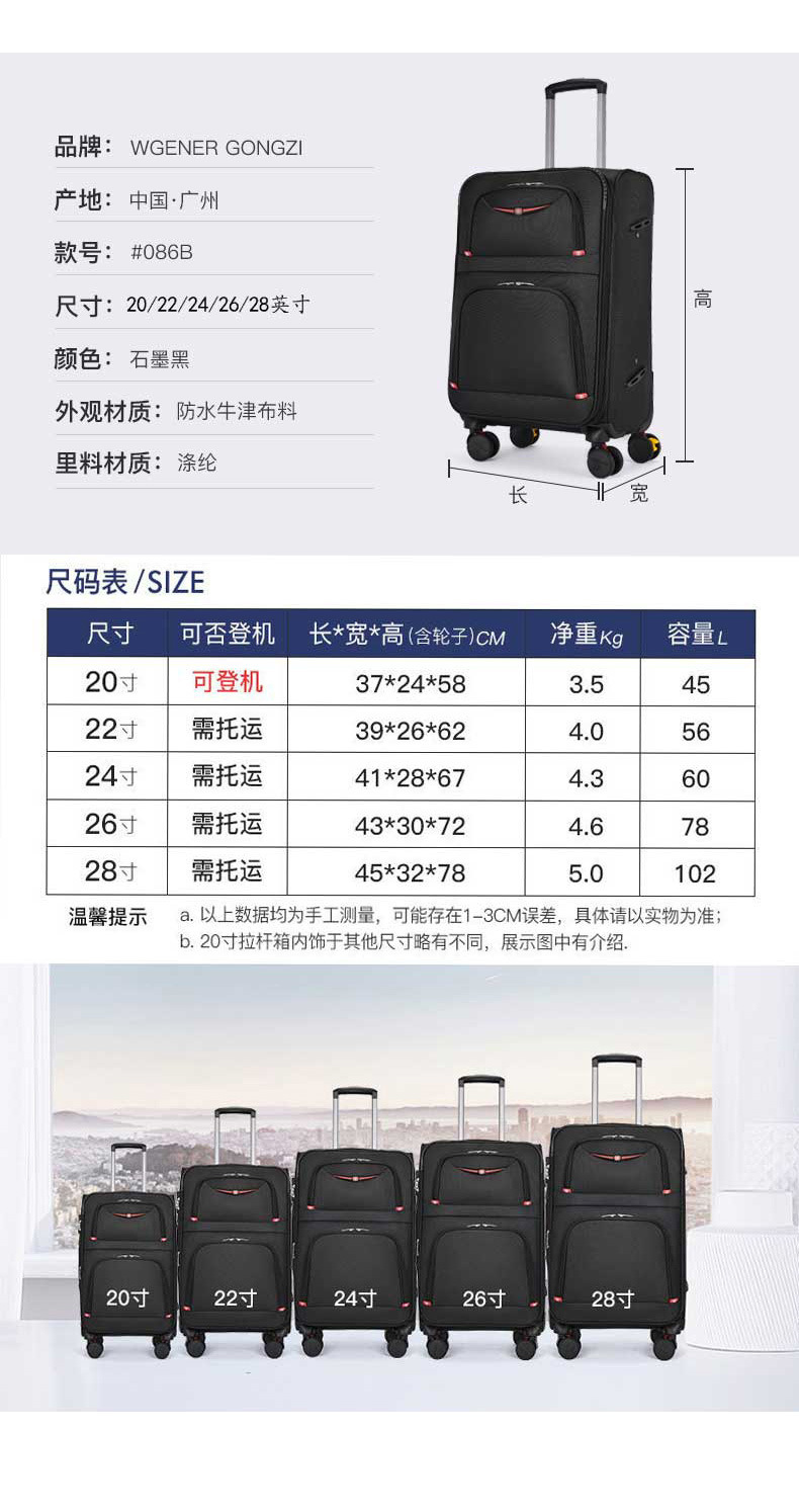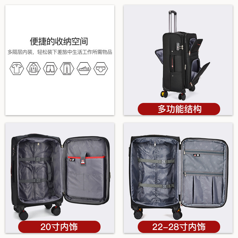 20 인치 탑승 케이스 24 인치 충격 흡수 브레이크 휠 수하물 케이스 확장 가능 대용량 유니버설 휠 옥스포드 천 트롤리 케이스