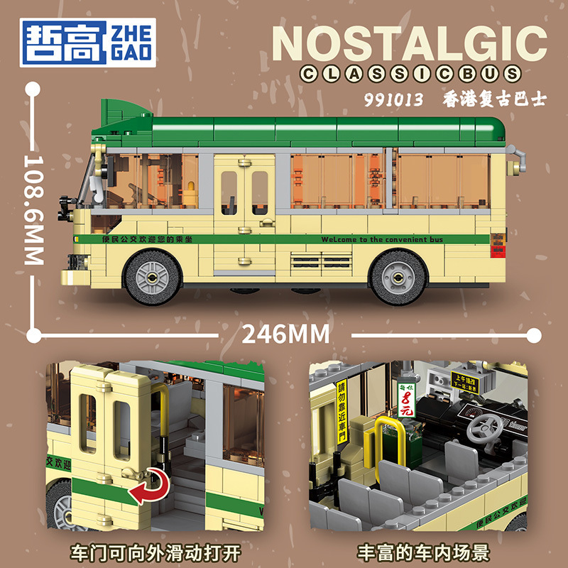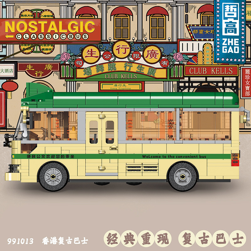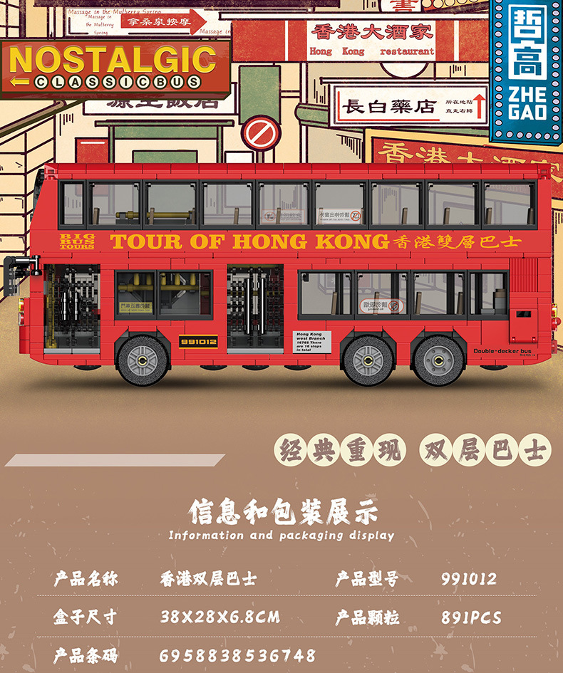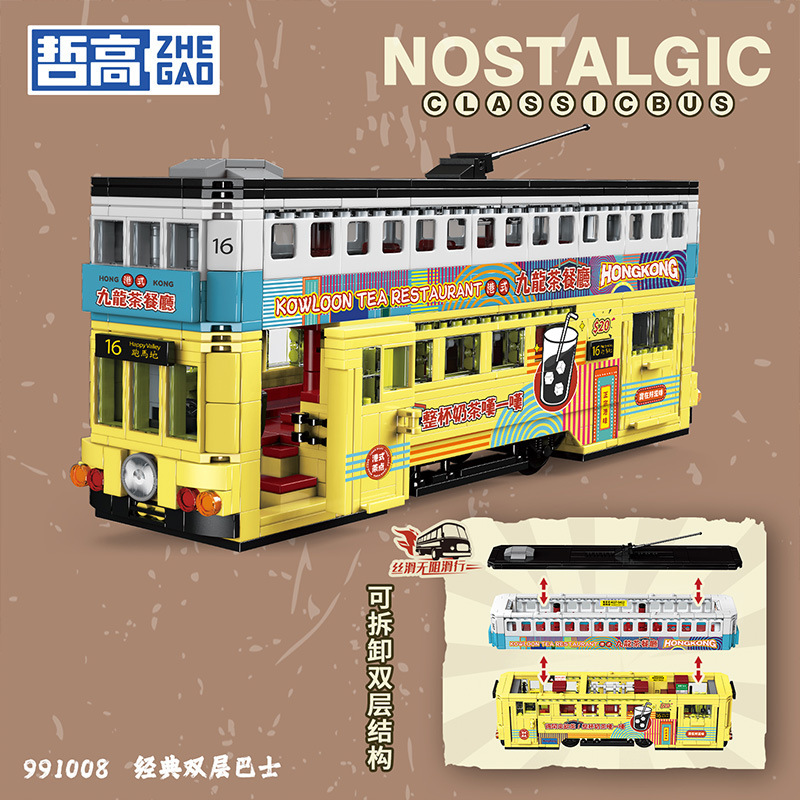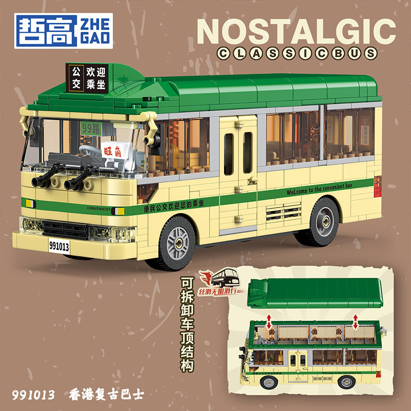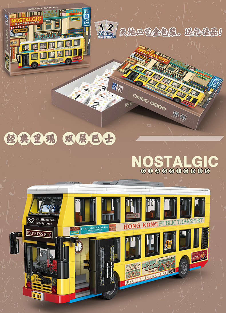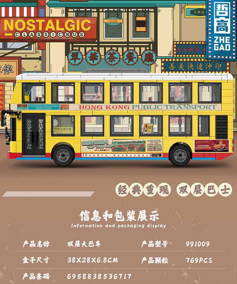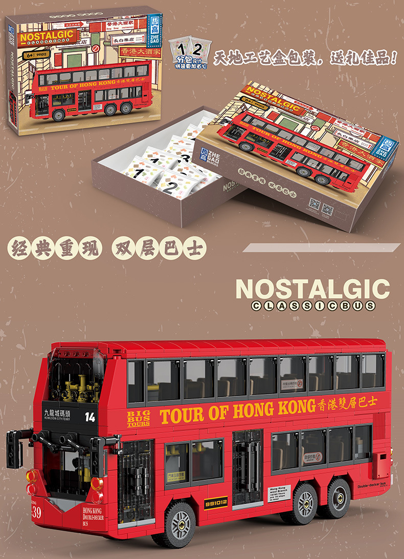 Zhe Gao 빌딩 블록 991008 클래식 더블 레이어 버스 복고풍 어린이 조립 모델 트렌디 한 플레이 퍼즐 빌딩 블록 장난감스토어 가기