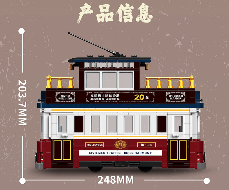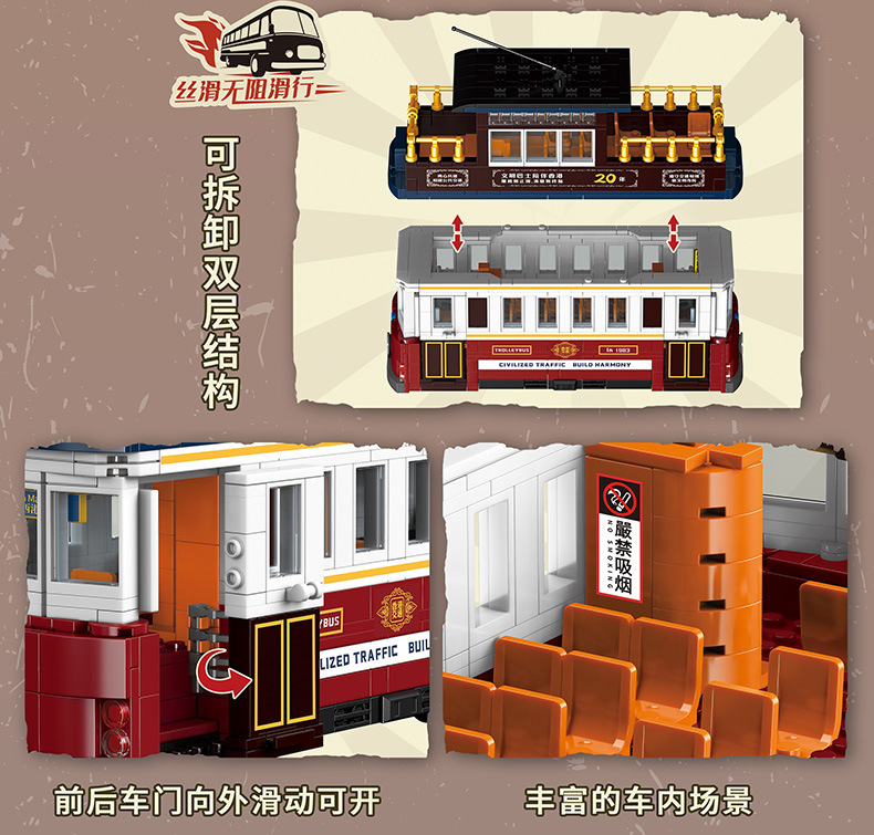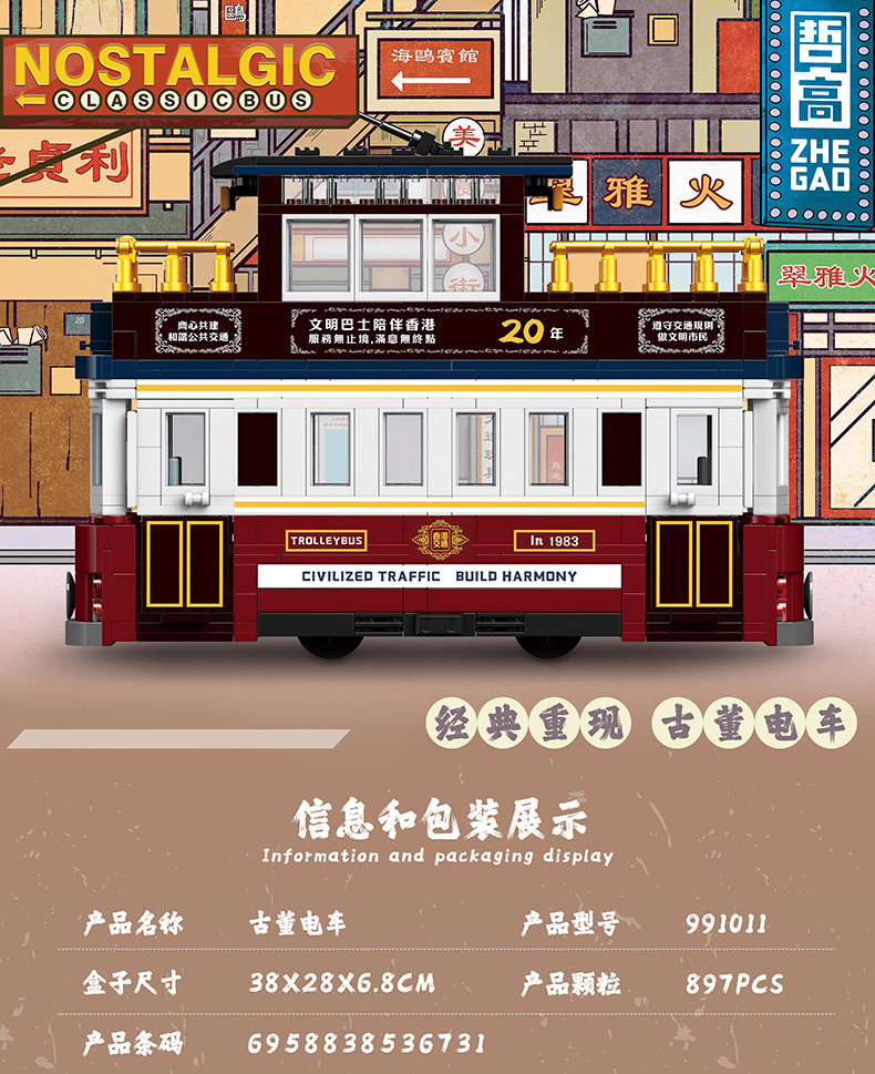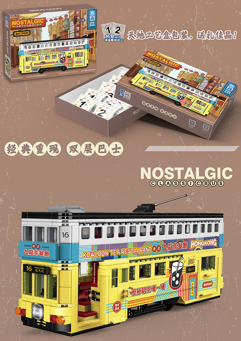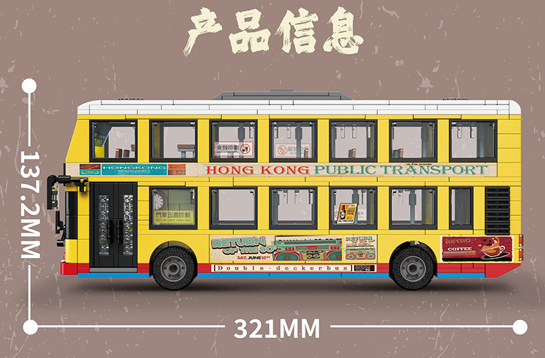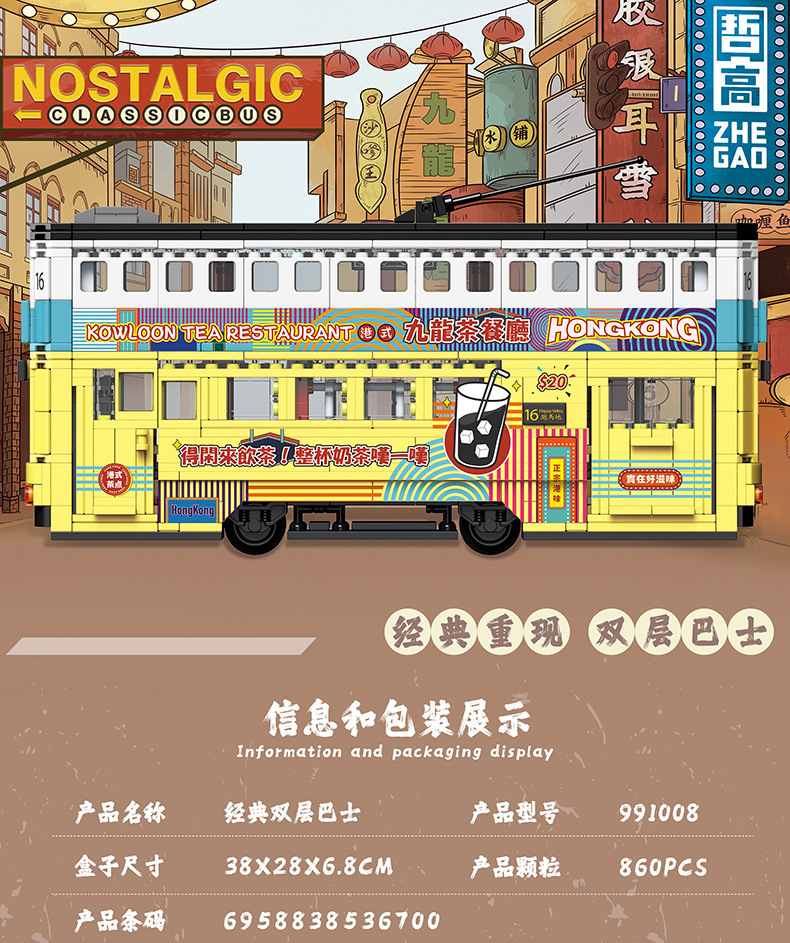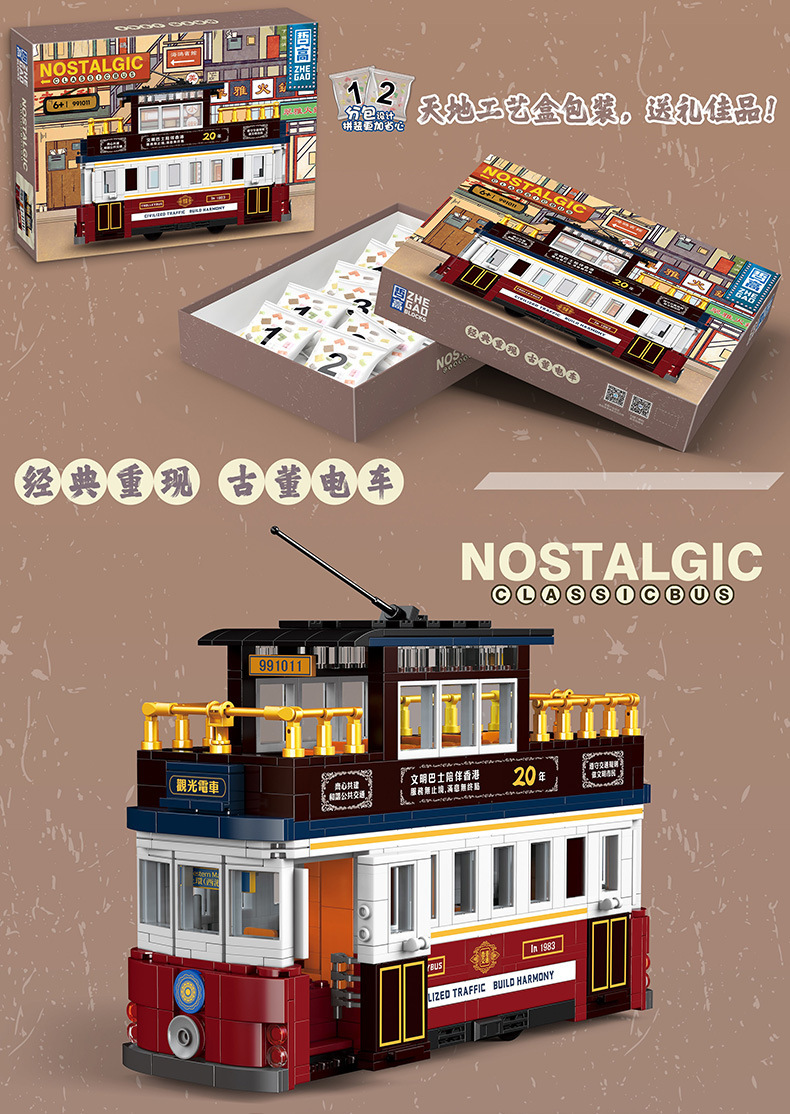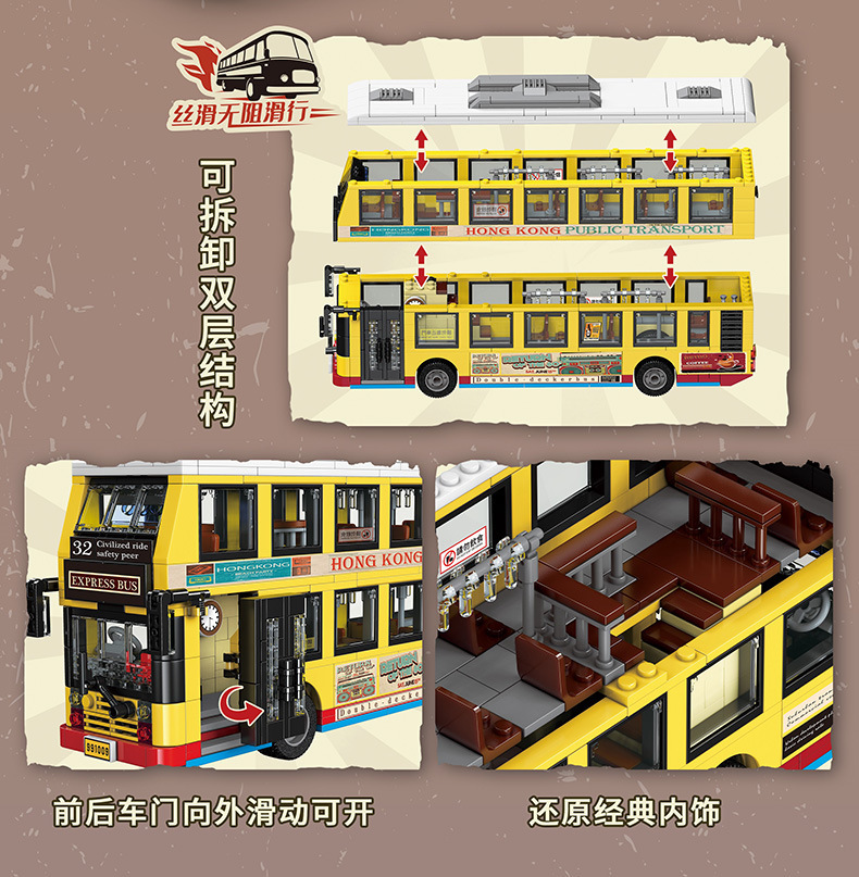 Zhe Gao 빌딩 블록 991008 클래식 더블 레이어 버스 복고풍 어린이 조립 모델 트렌디 한 플레이 퍼즐 빌딩 블록 장난감스토어 가기