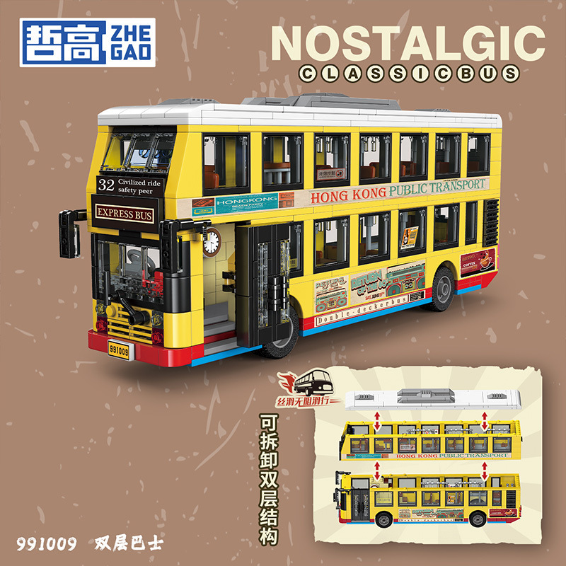 Zhe Gao 빌딩 블록 991008 클래식 더블 레이어 버스 복고풍 어린이 조립 모델 트렌디 한 플레이 퍼즐 빌딩 블록 장난감
