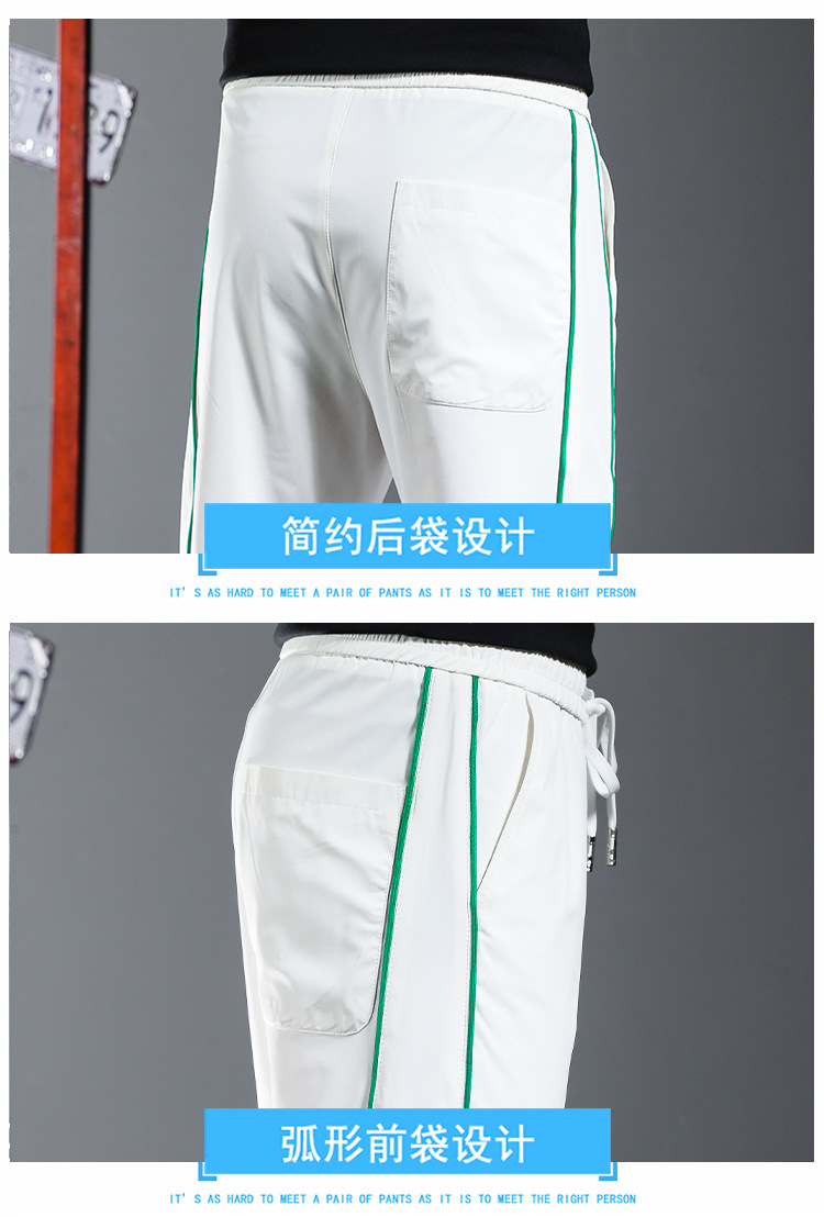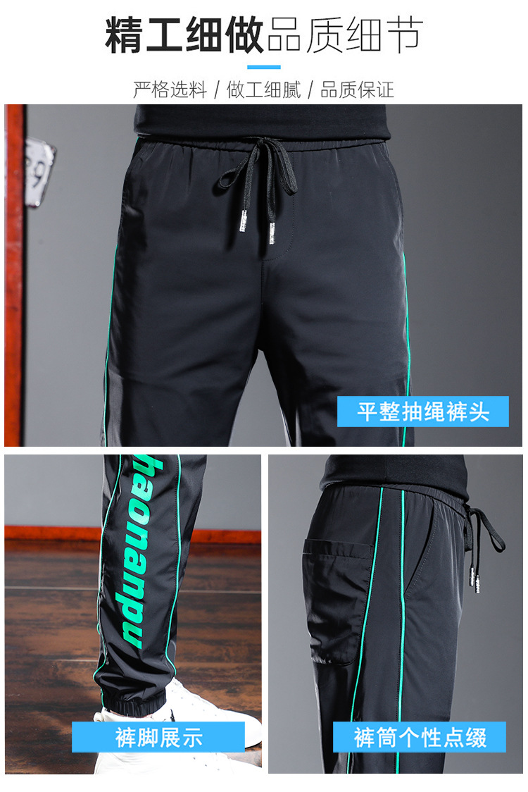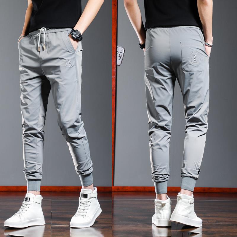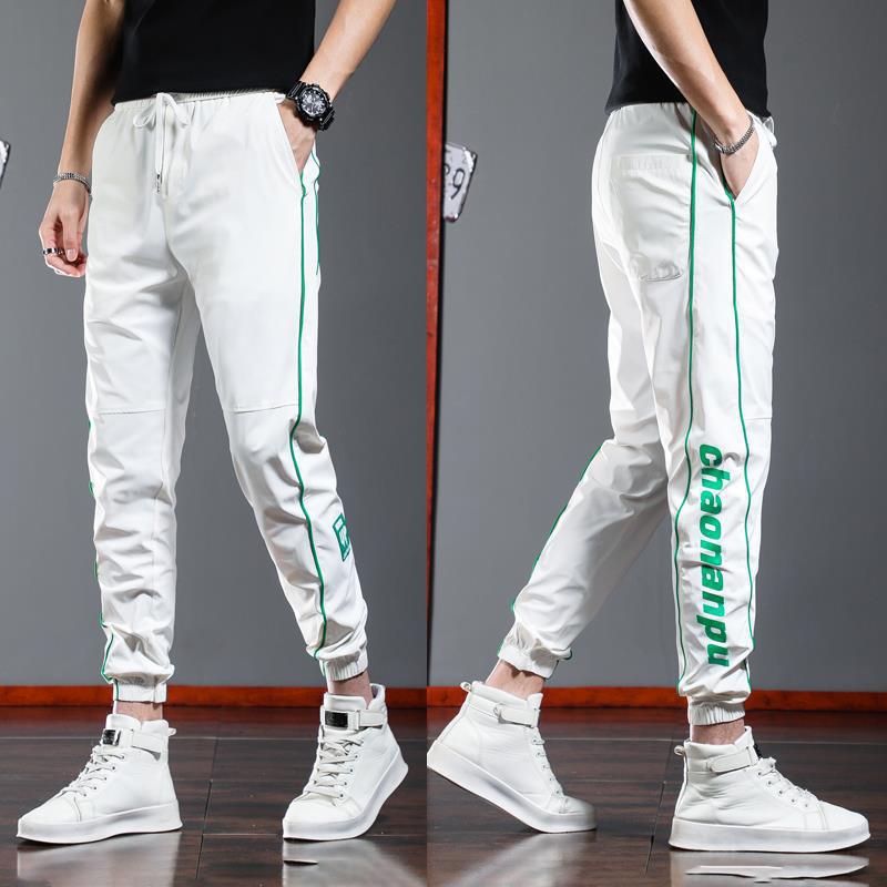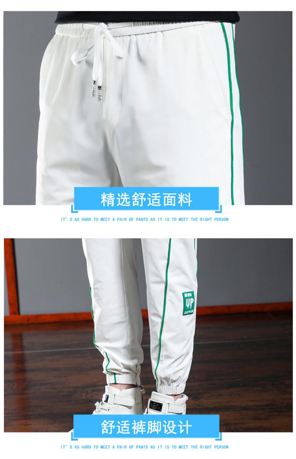여름 얇은 아이스 실크 캐주얼 바지 남성용 빠른 건조 바지 줄무늬 문자 인쇄 블랙 스포츠 스트레치 발목 묶인 바지 바지 바지스토어 가기