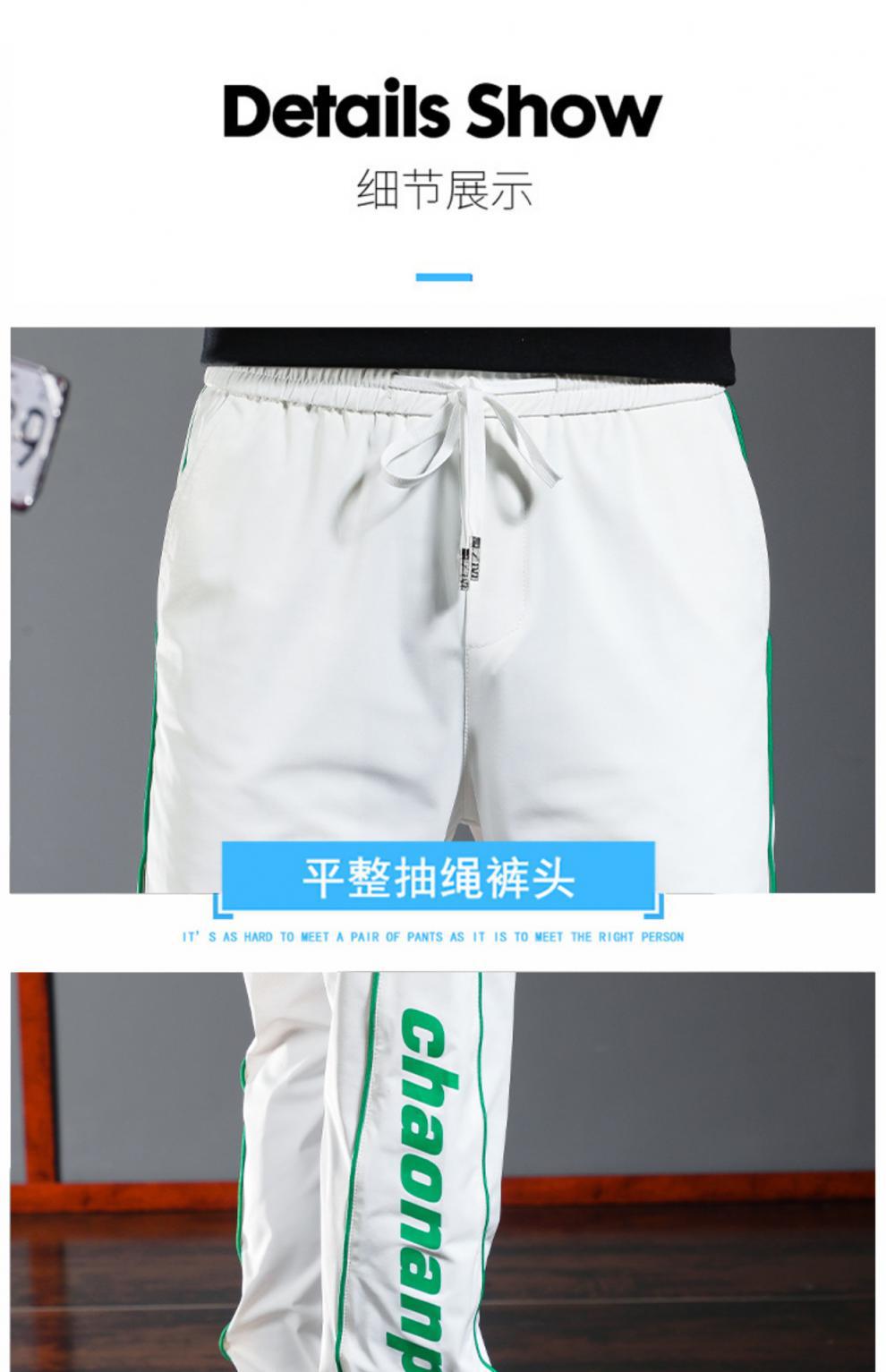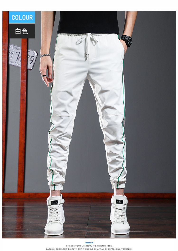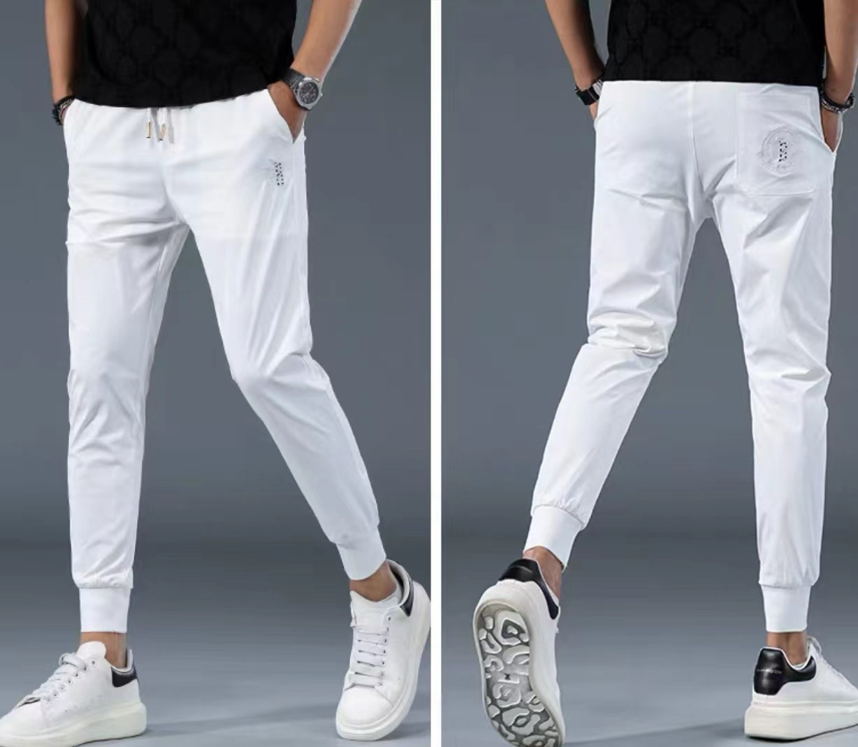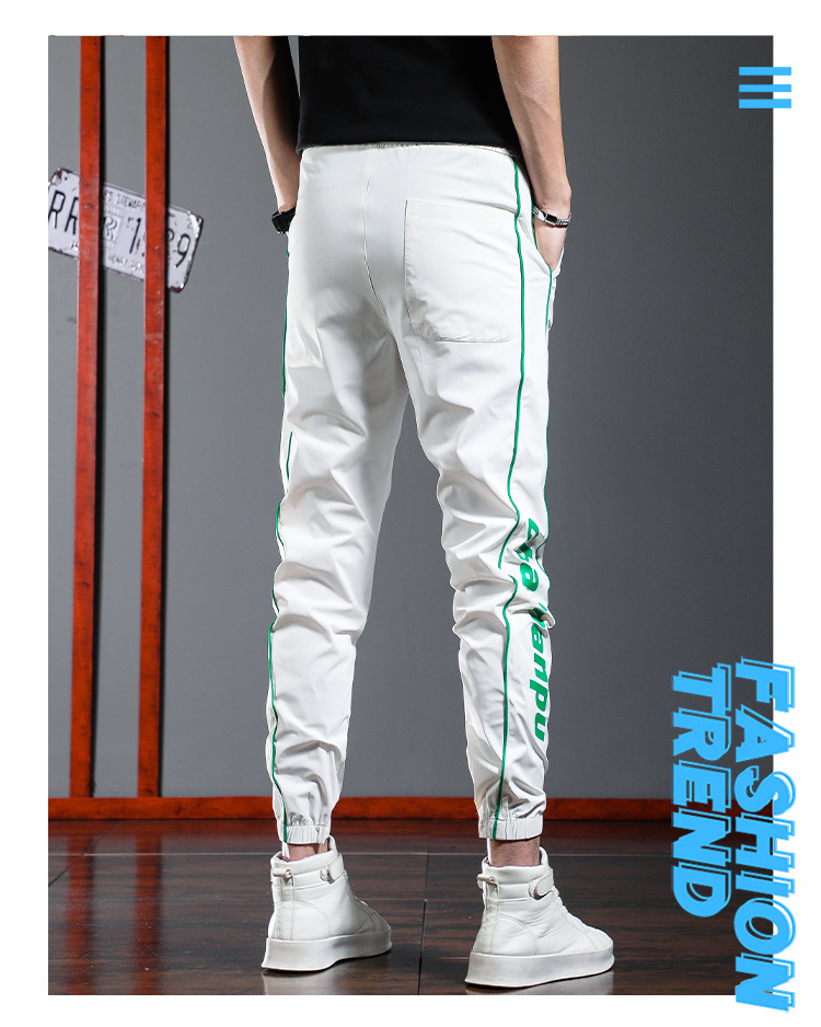 여름 얇은 아이스 실크 캐주얼 바지 남성용 빠른 건조 바지 줄무늬 문자 인쇄 블랙 스포츠 스트레치 발목 묶인 바지 바지 바지