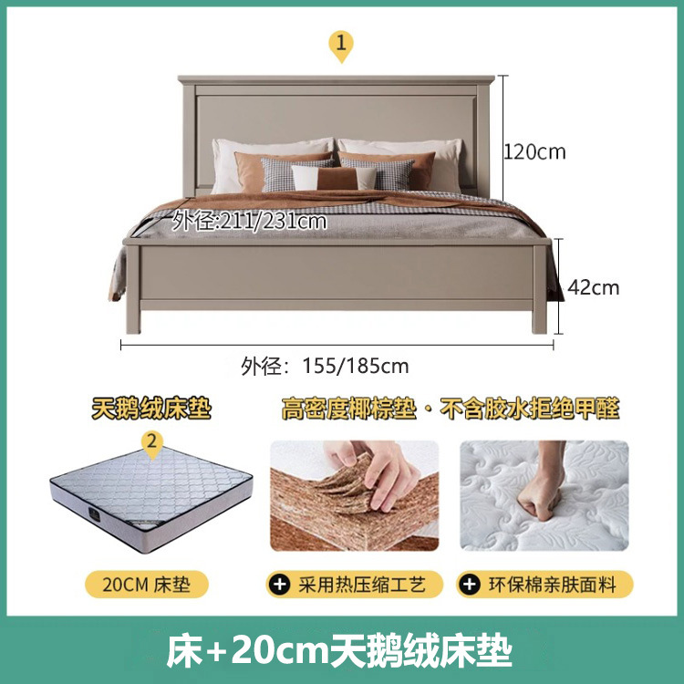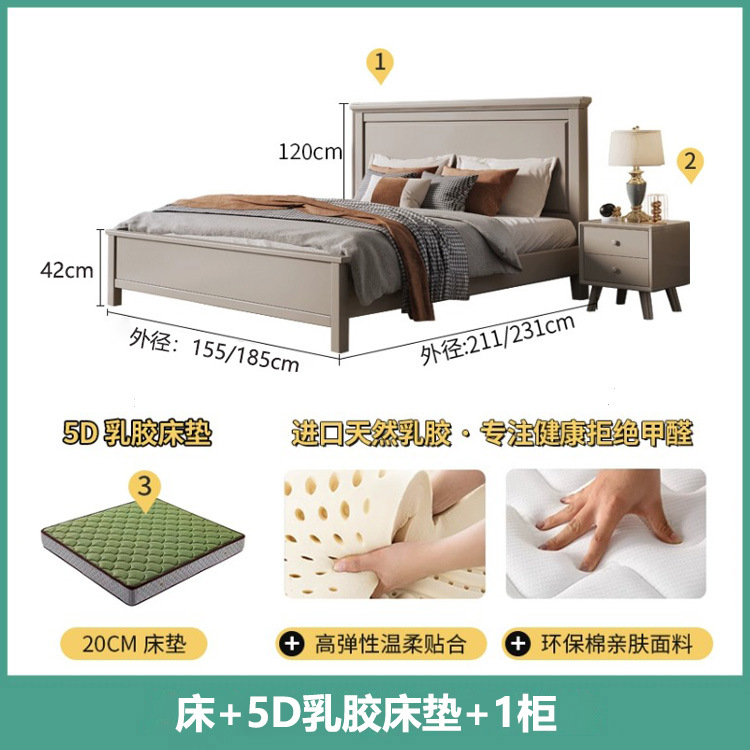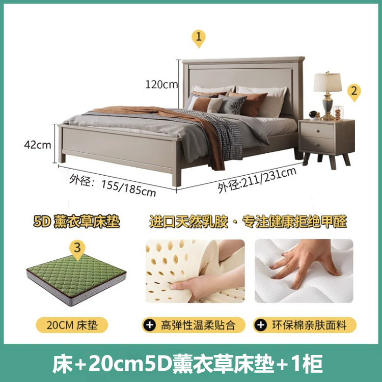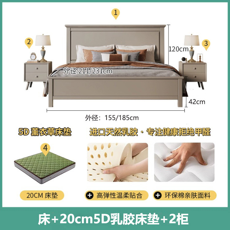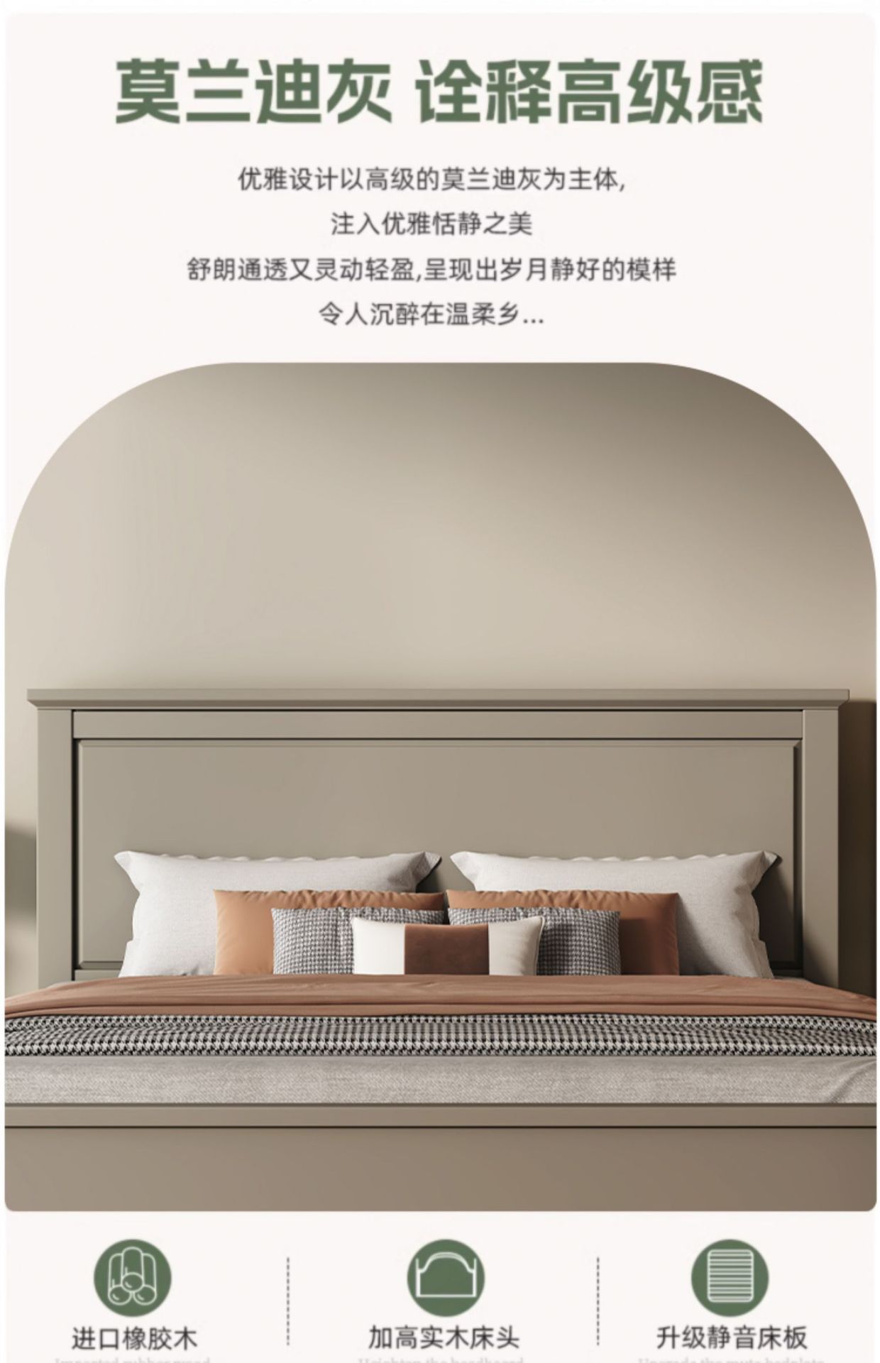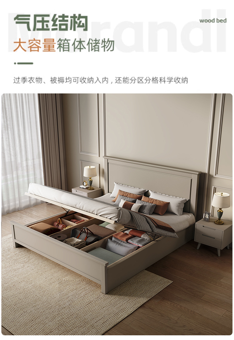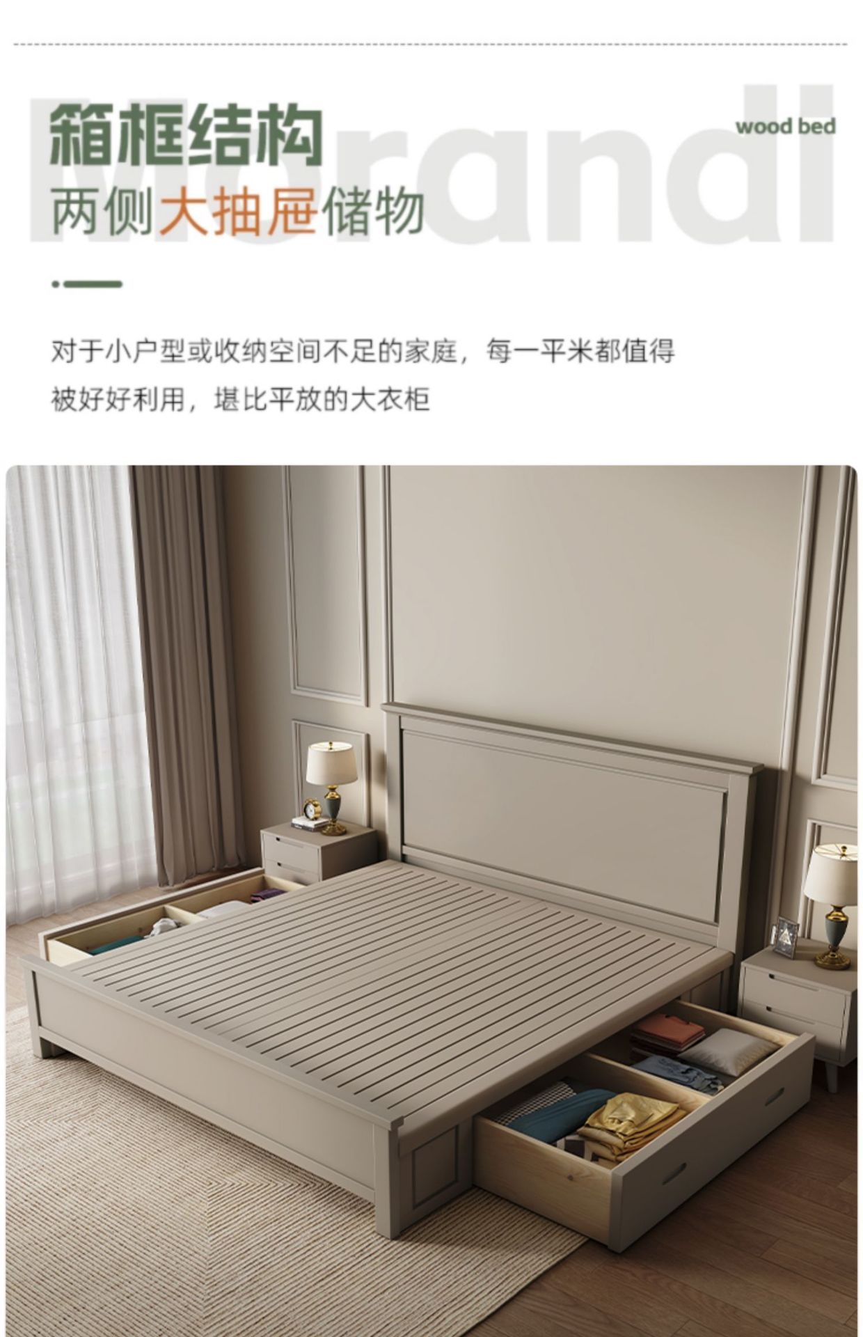 북유럽 회색 전체 단단한 나무 침대 현대 미니멀 한 1.8 m 더블 침대 1.5 마스터 침실 공주 미국 침대 높은 상자 저장