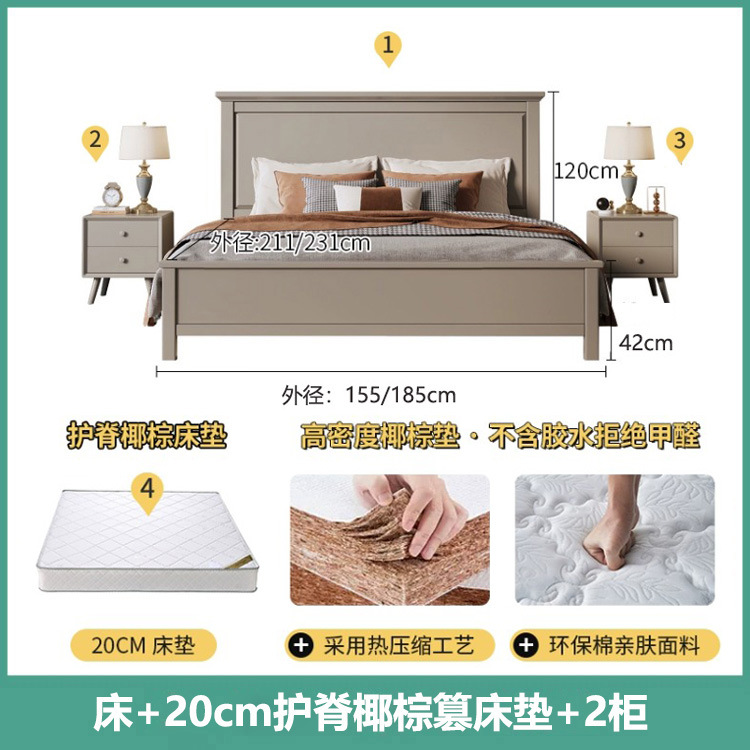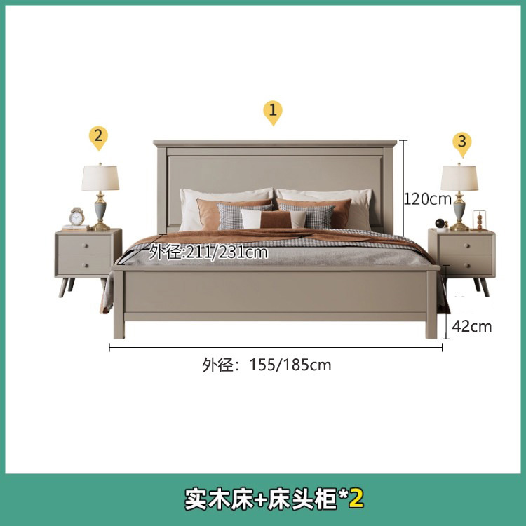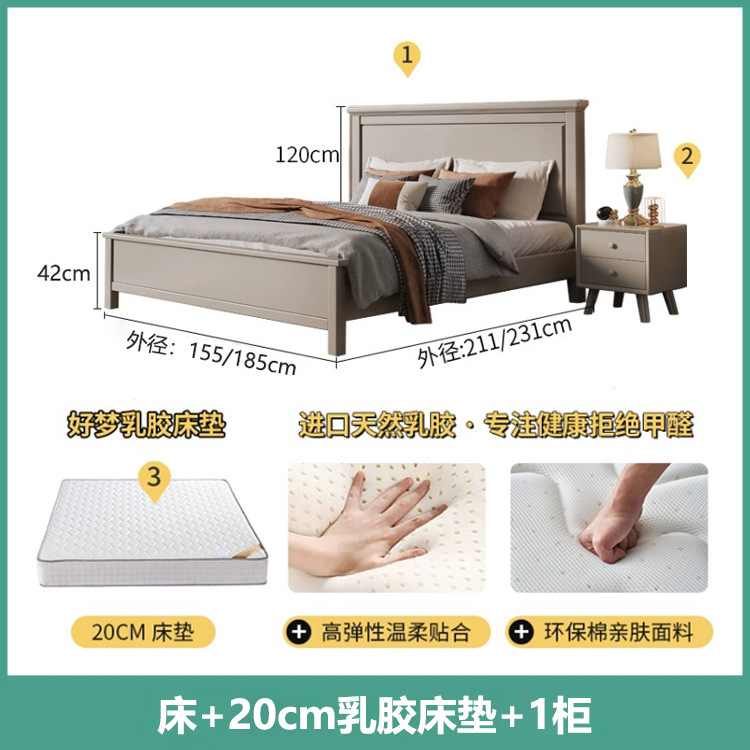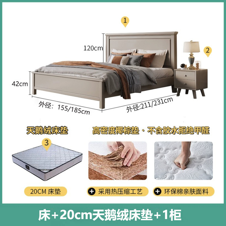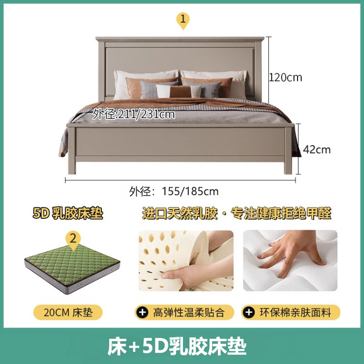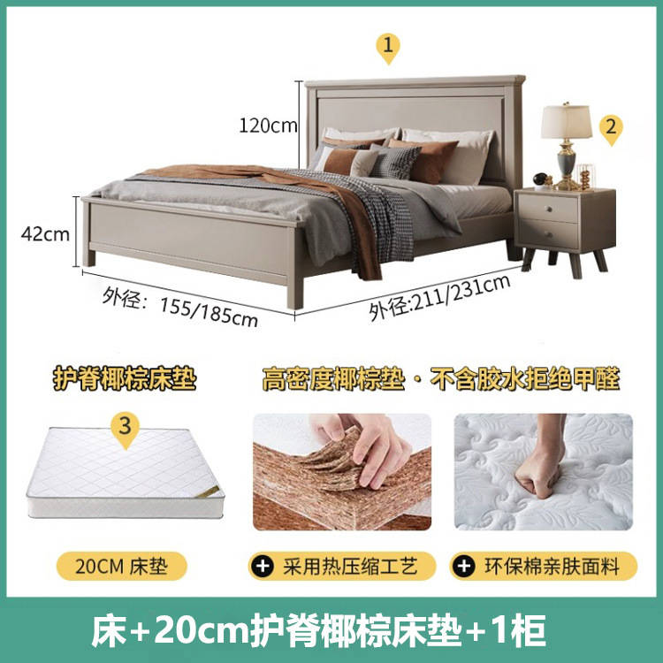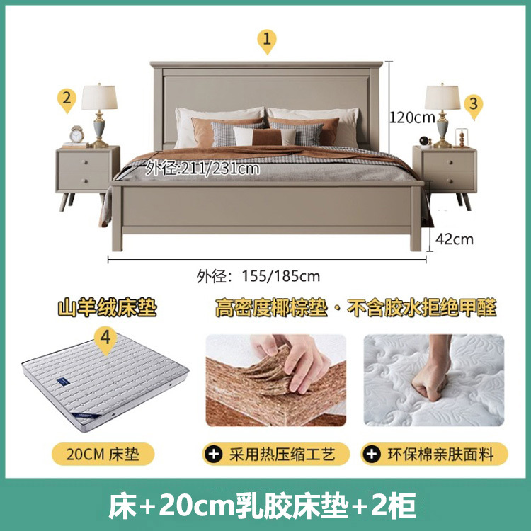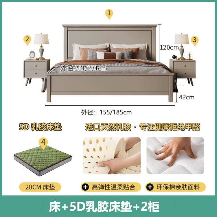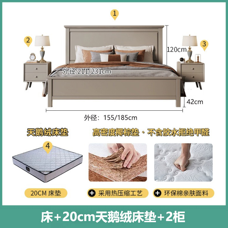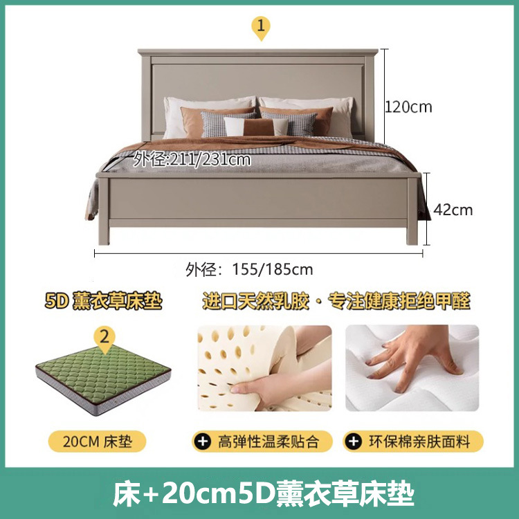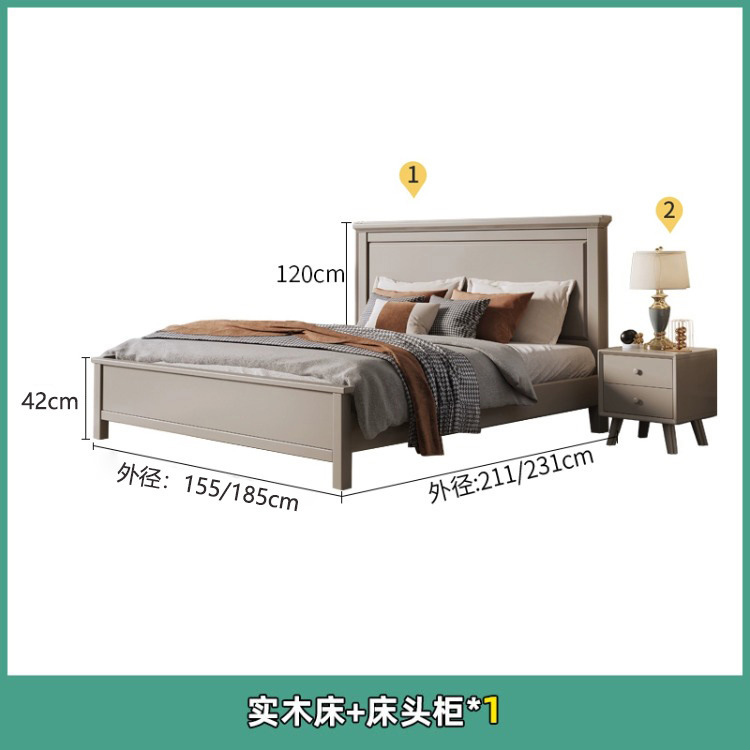 북유럽 회색 전체 단단한 나무 침대 현대 미니멀 한 1.8 m 더블 침대 1.5 마스터 침실 공주 미국 침대 높은 상자 저장