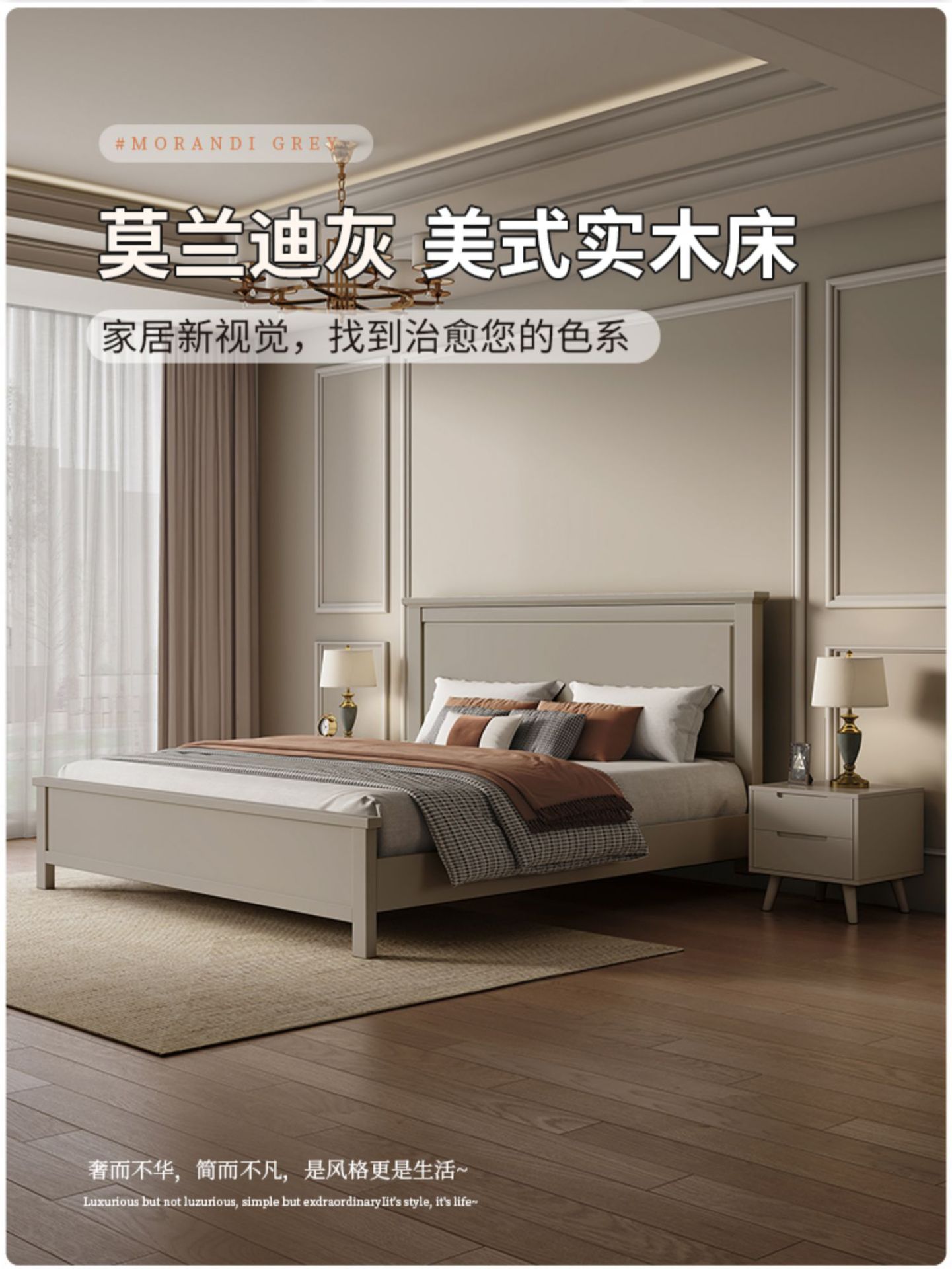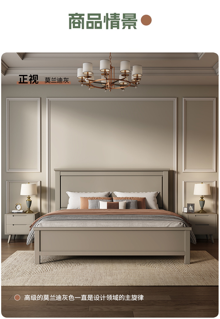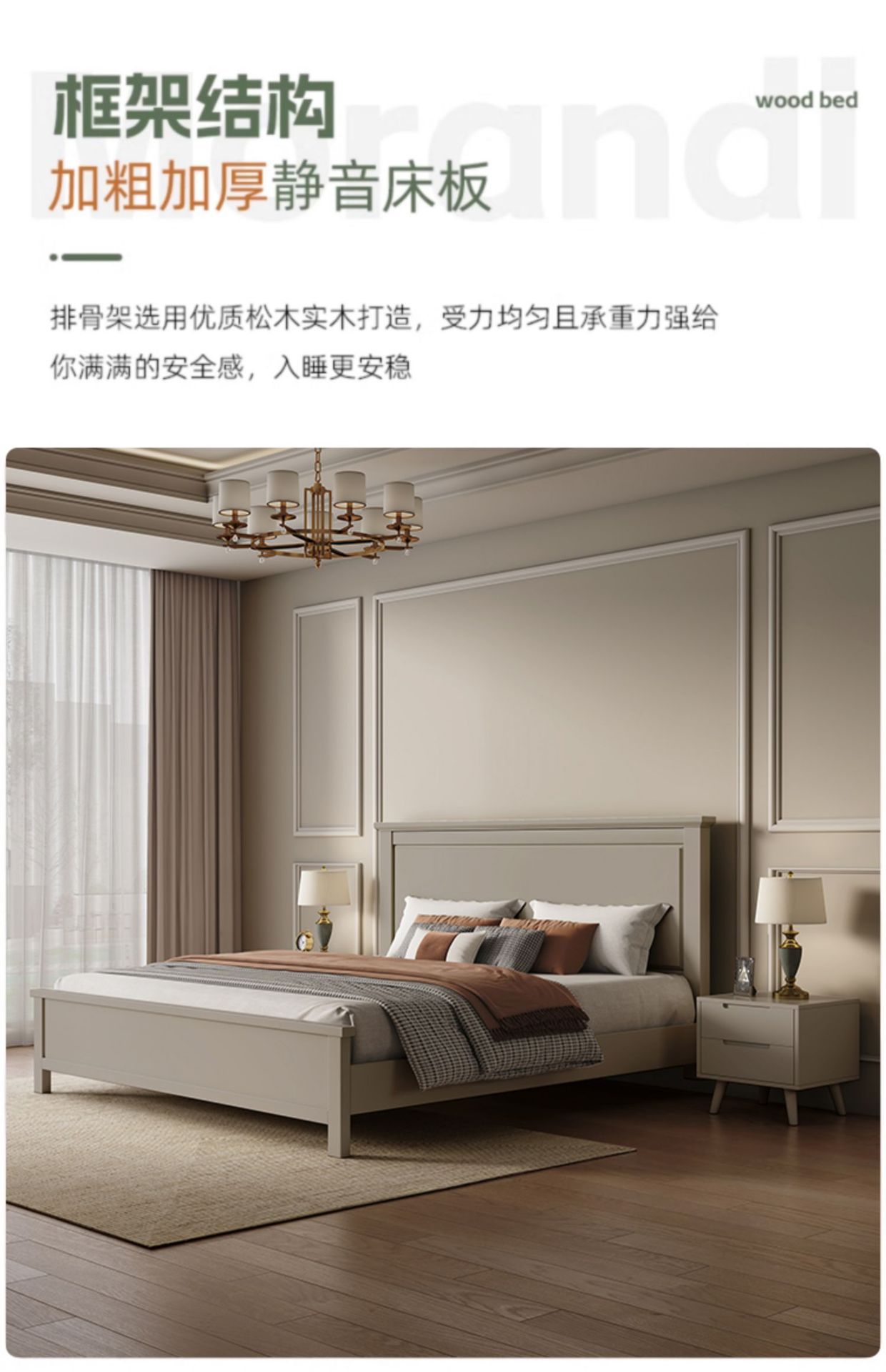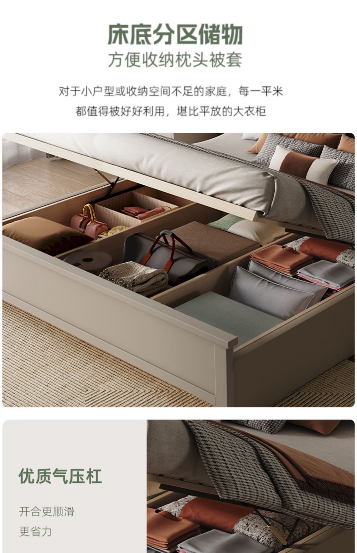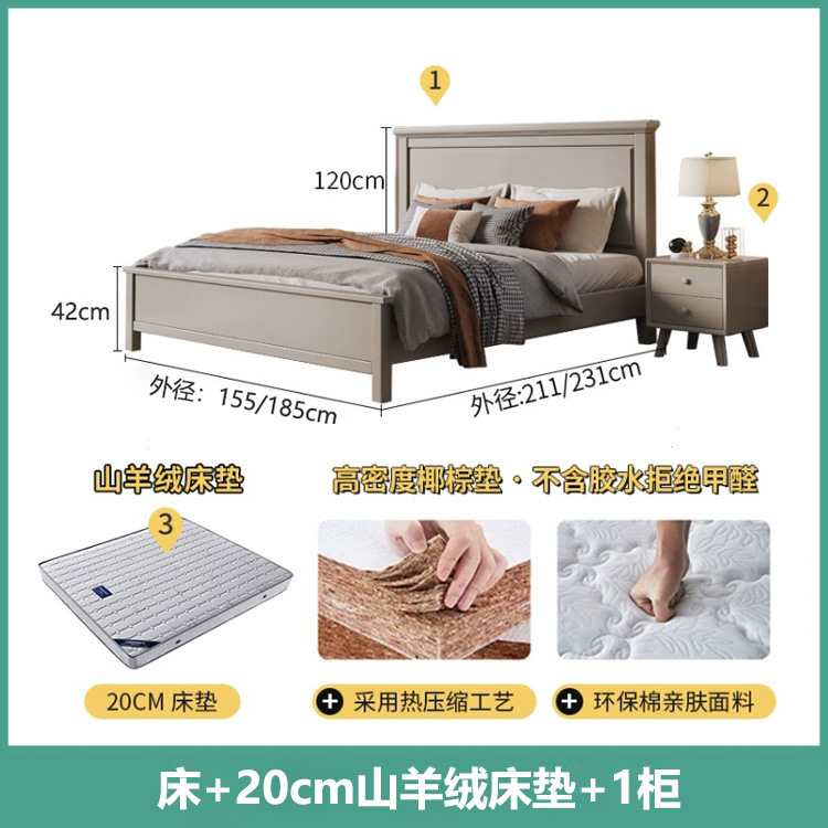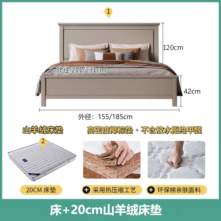 북유럽 회색 전체 단단한 나무 침대 현대 미니멀 한 1.8 m 더블 침대 1.5 마스터 침실 공주 미국 침대 높은 상자 저장