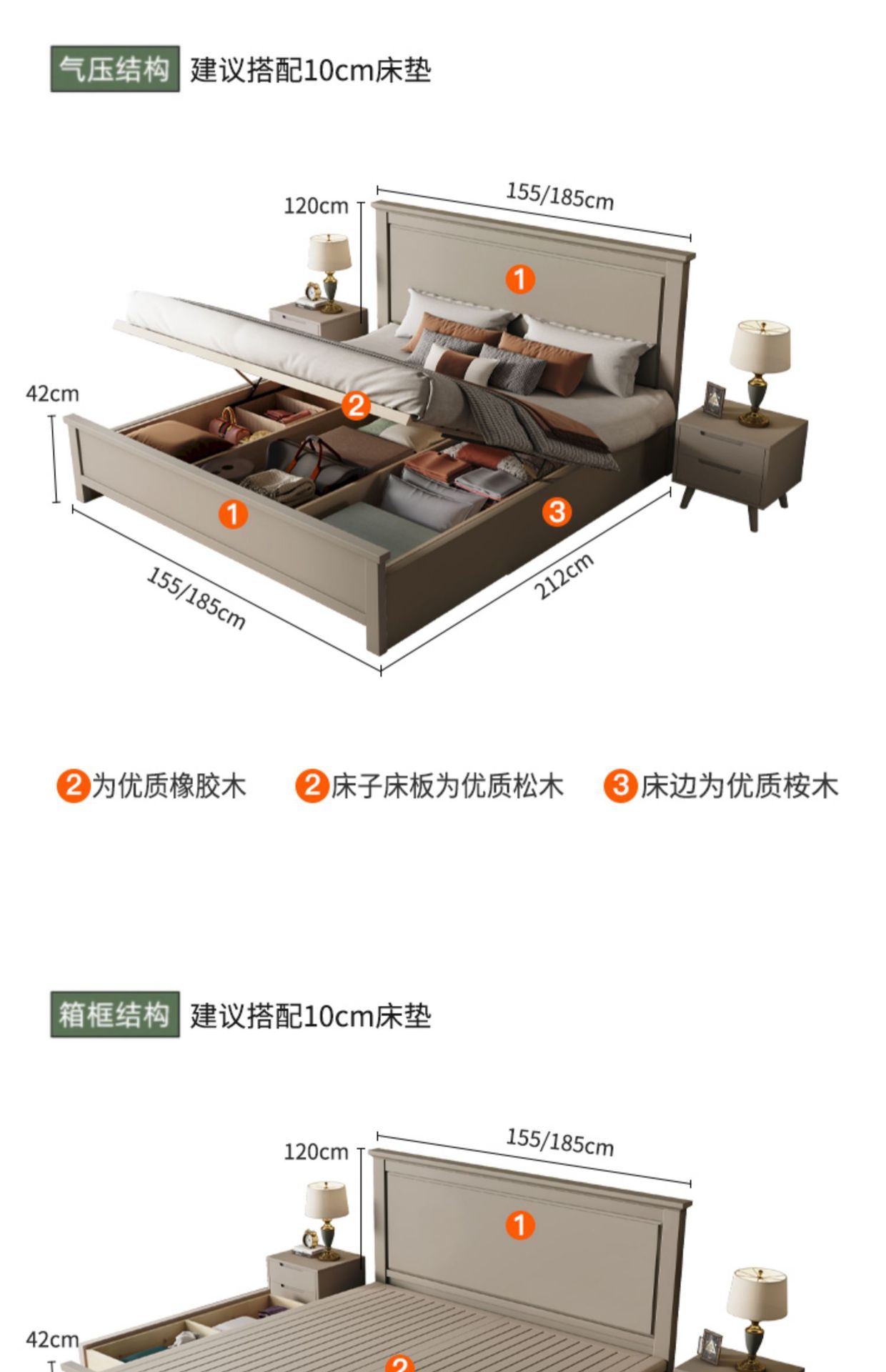 • 침대 + 20cm 라텍스 패드 + 침대 옆 테이블 * 1 95% 고객의 선택