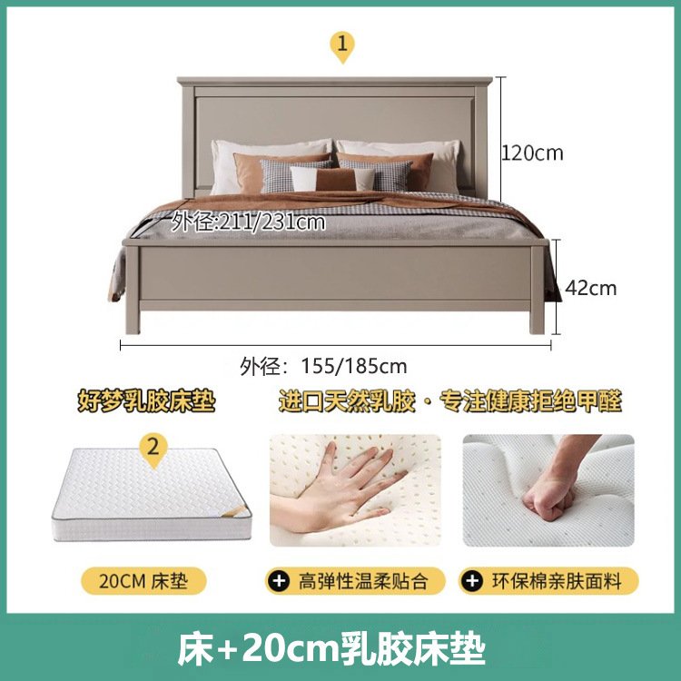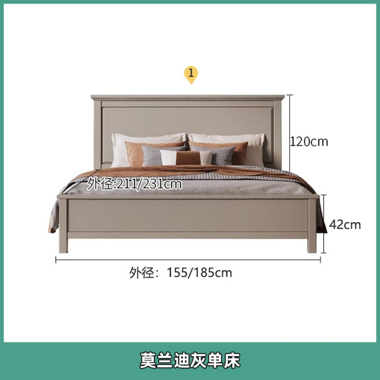 북유럽 회색 전체 단단한 나무 침대 현대 미니멀 한 1.8 m 더블 침대 1.5 마스터 침실 공주 미국 침대 높은 상자 저장스토어 가기
