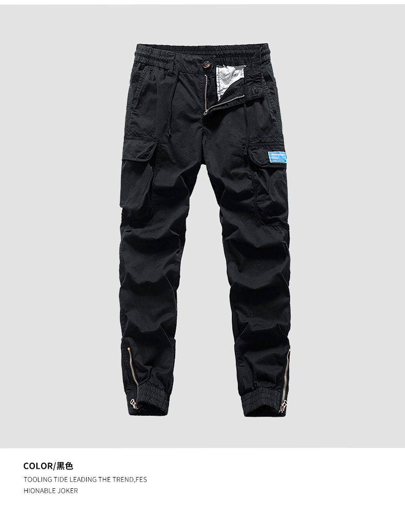 아마존 688 전용 남성 신형 한국식 청소년 지퍼 멀티 포켓 드로 스트링 바지 바지스토어 가기