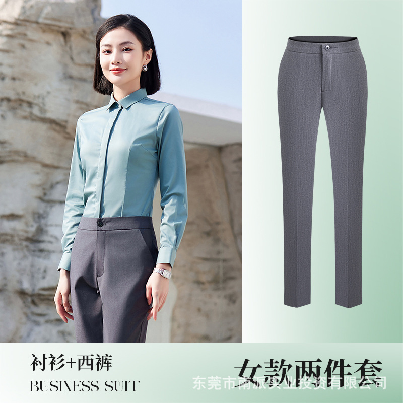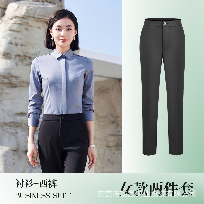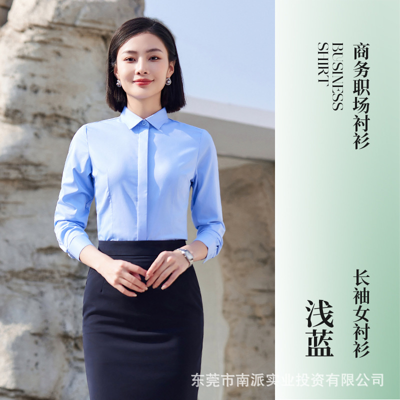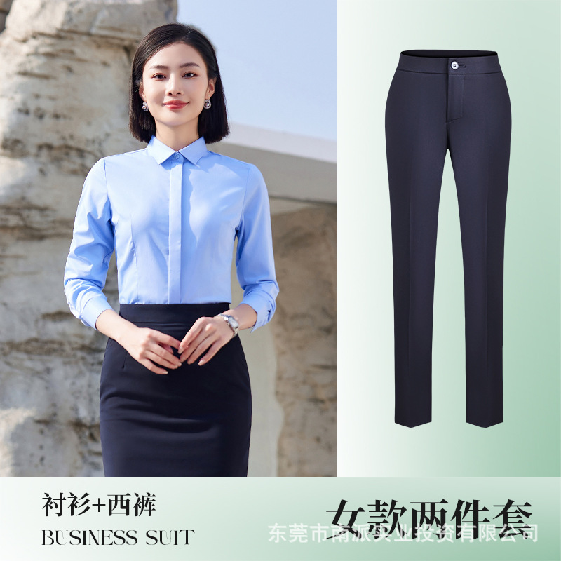 • 여성용 라이트 블루 긴팔 셔츠 + 세트 바지