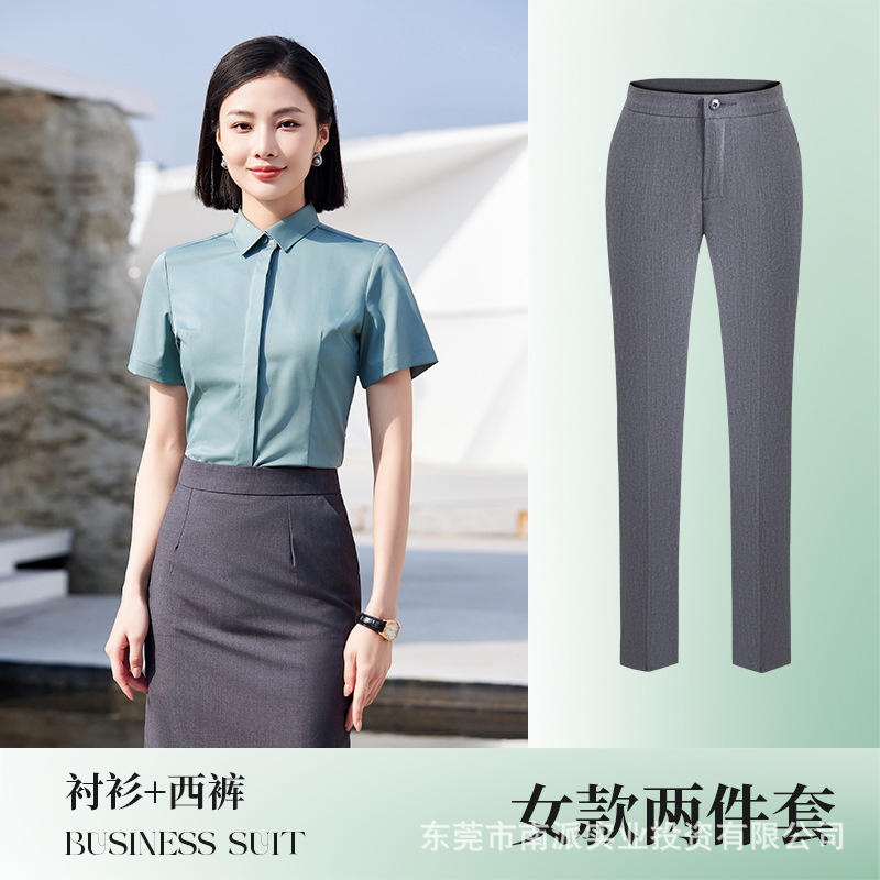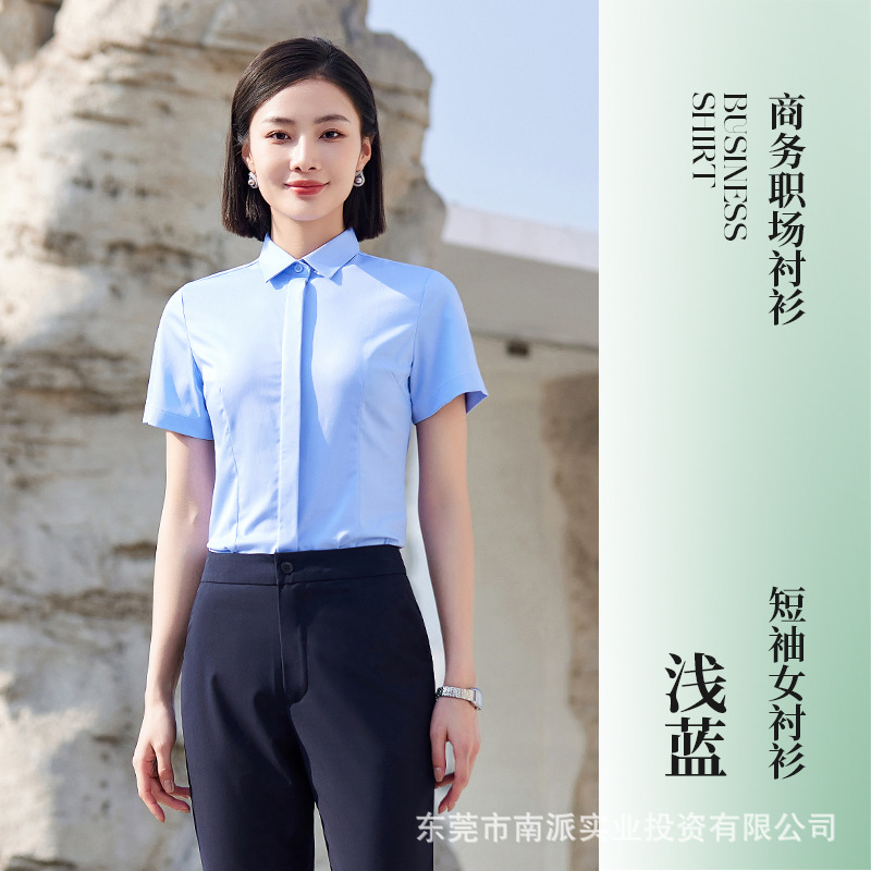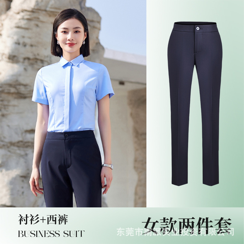 • 여성용 라이트 블루 반팔 셔츠 + 세트 바지