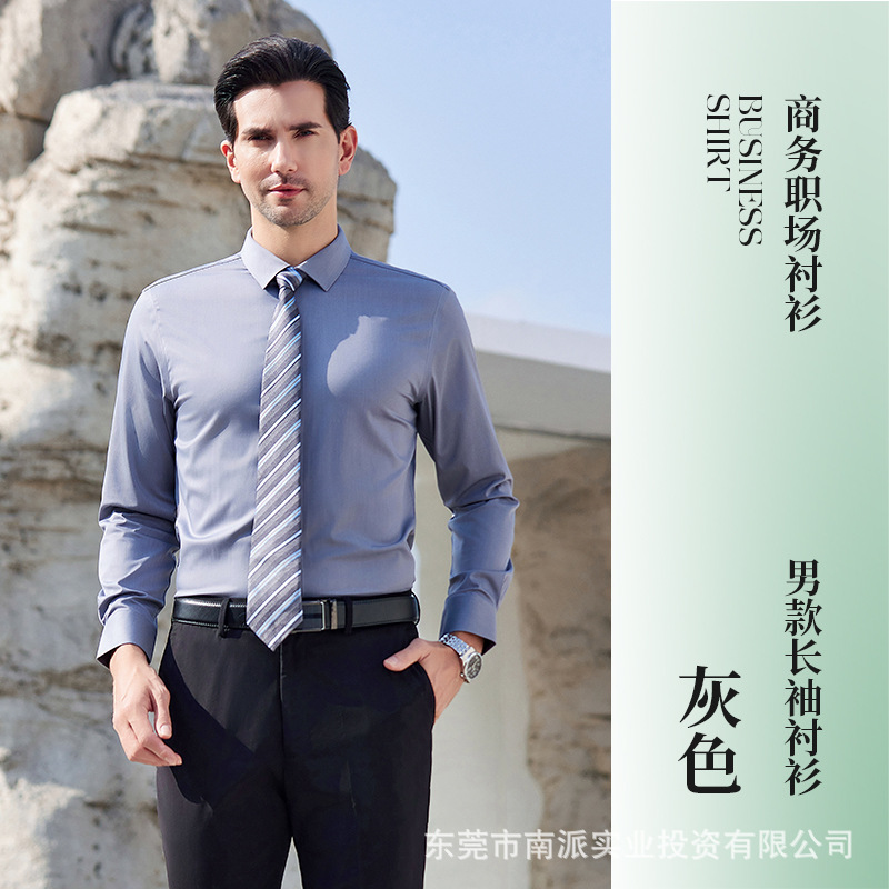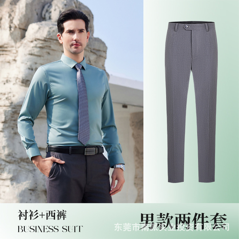 • 남성용 회색 긴팔 셔츠 + 세트 바지