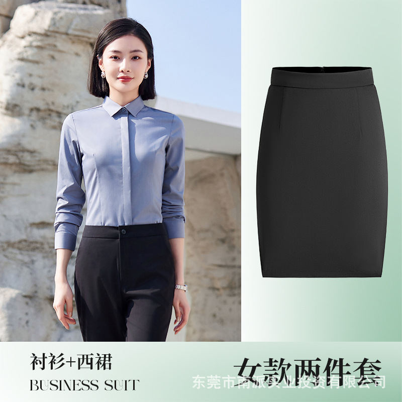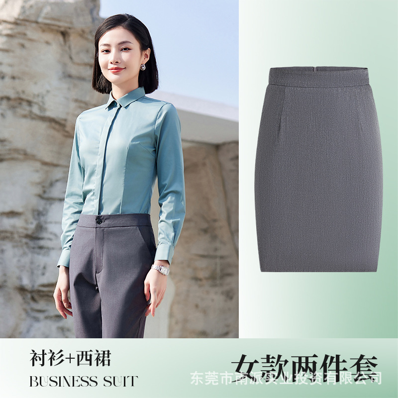 • 여성용 회색 긴팔 셔츠 + 웨스턴 스커트