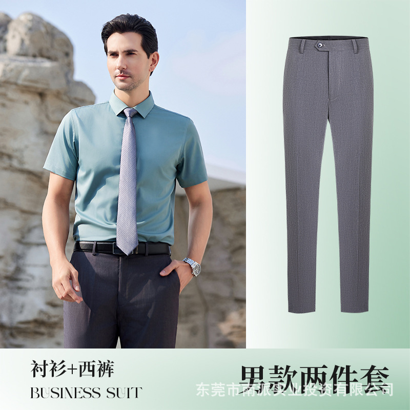 • 남성용 회색 반팔 셔츠 + 세트 바지