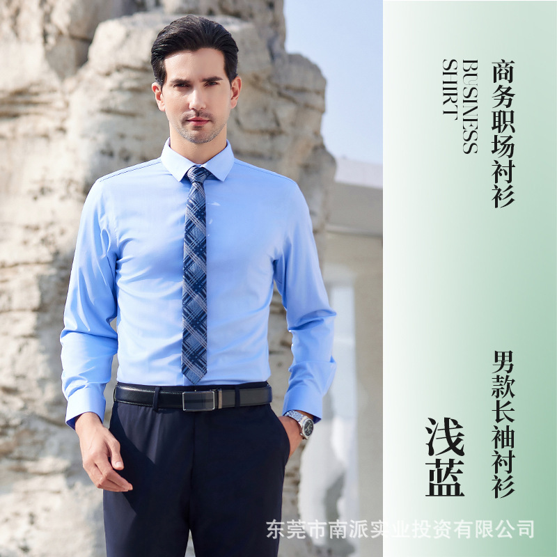 • 남자 라이트 블루 긴팔 셔츠 + 세트 바지