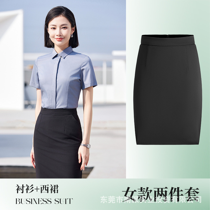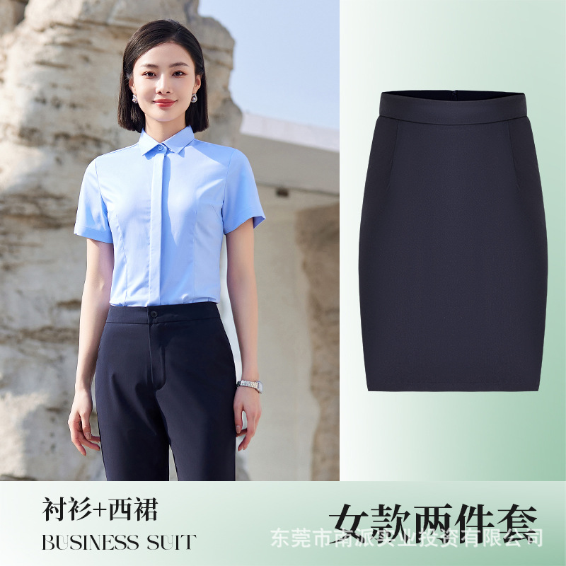 • 여성용 라이트 블루 반팔 셔츠 + 웨스턴 스커트
