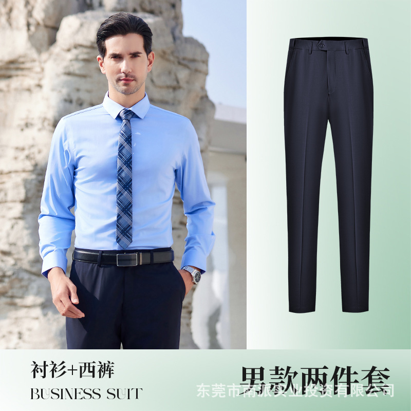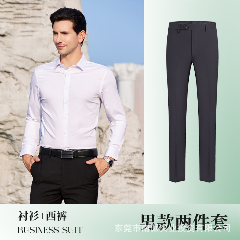 • 남성용 흰색 긴팔 셔츠 + 세트 바지