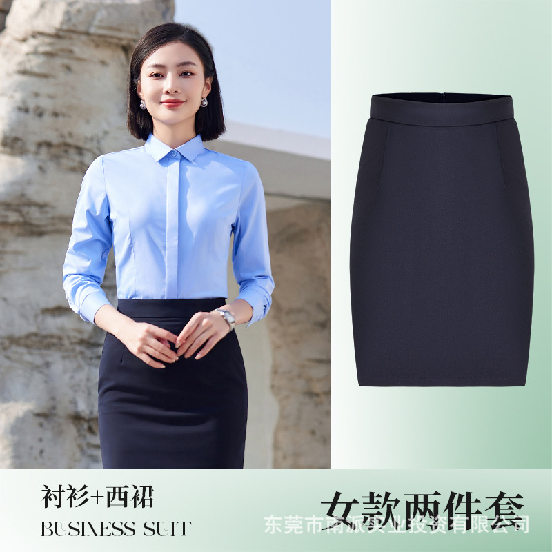 • 여성용 라이트 블루 긴팔 셔츠 + 웨스턴 스커트