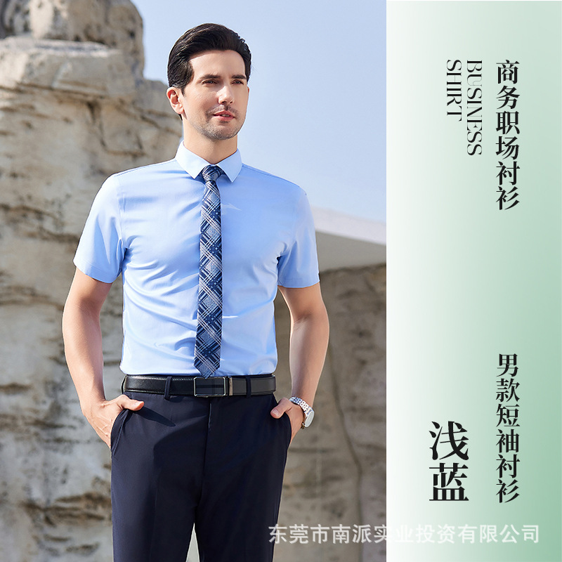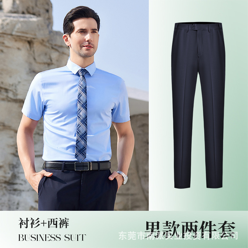 • 남자 라이트 블루 반팔 셔츠 + 세트 바지