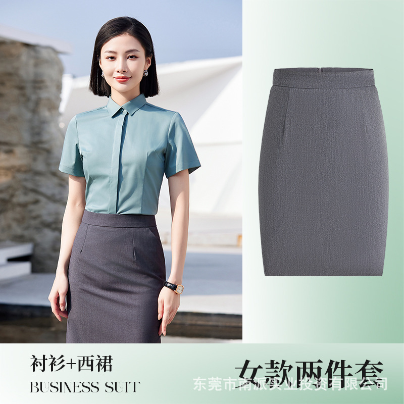 • 여성용 회색 반팔 셔츠 + 웨스턴 스커트