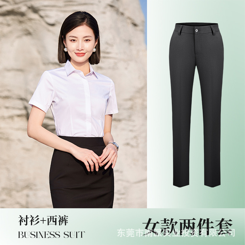 • 여성용 흰색 반팔 셔츠 + 세트 바지