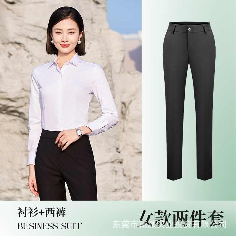 • 여성용 흰색 긴팔 셔츠 + 세트 바지