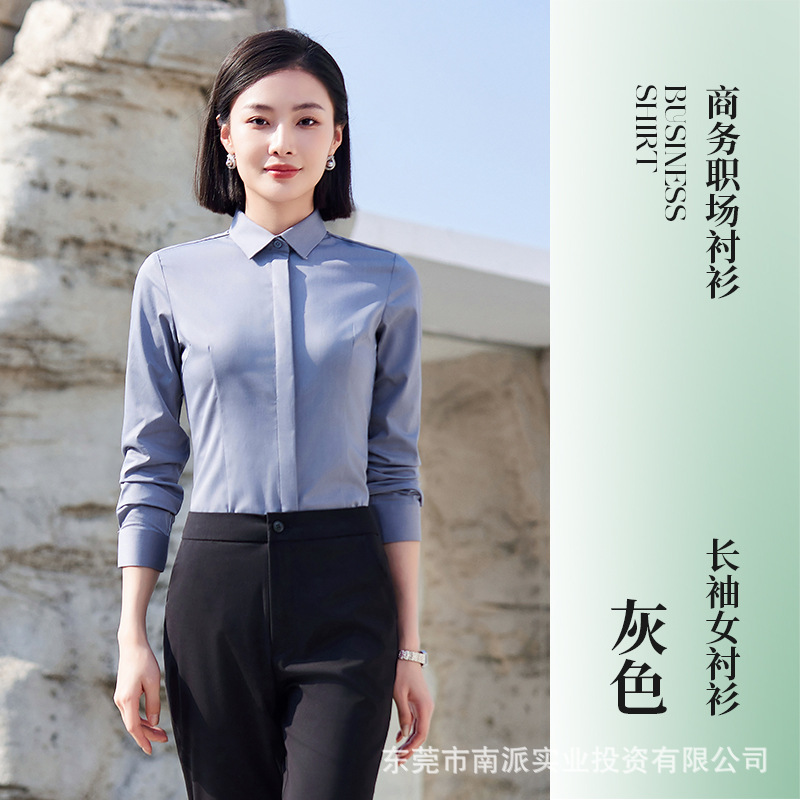 • 여성용 회색 긴팔 셔츠 + 세트 바지