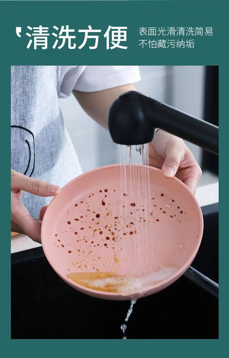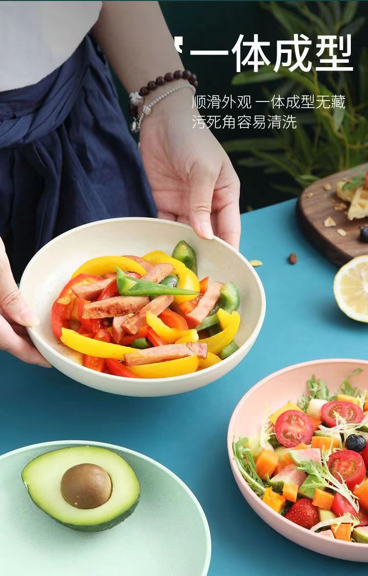 [P] 20cm 직경 밀 밀짚 야채 플레이트 과일 라운드 플라스틱 낙하 방지 플레이트 색상 랜덤