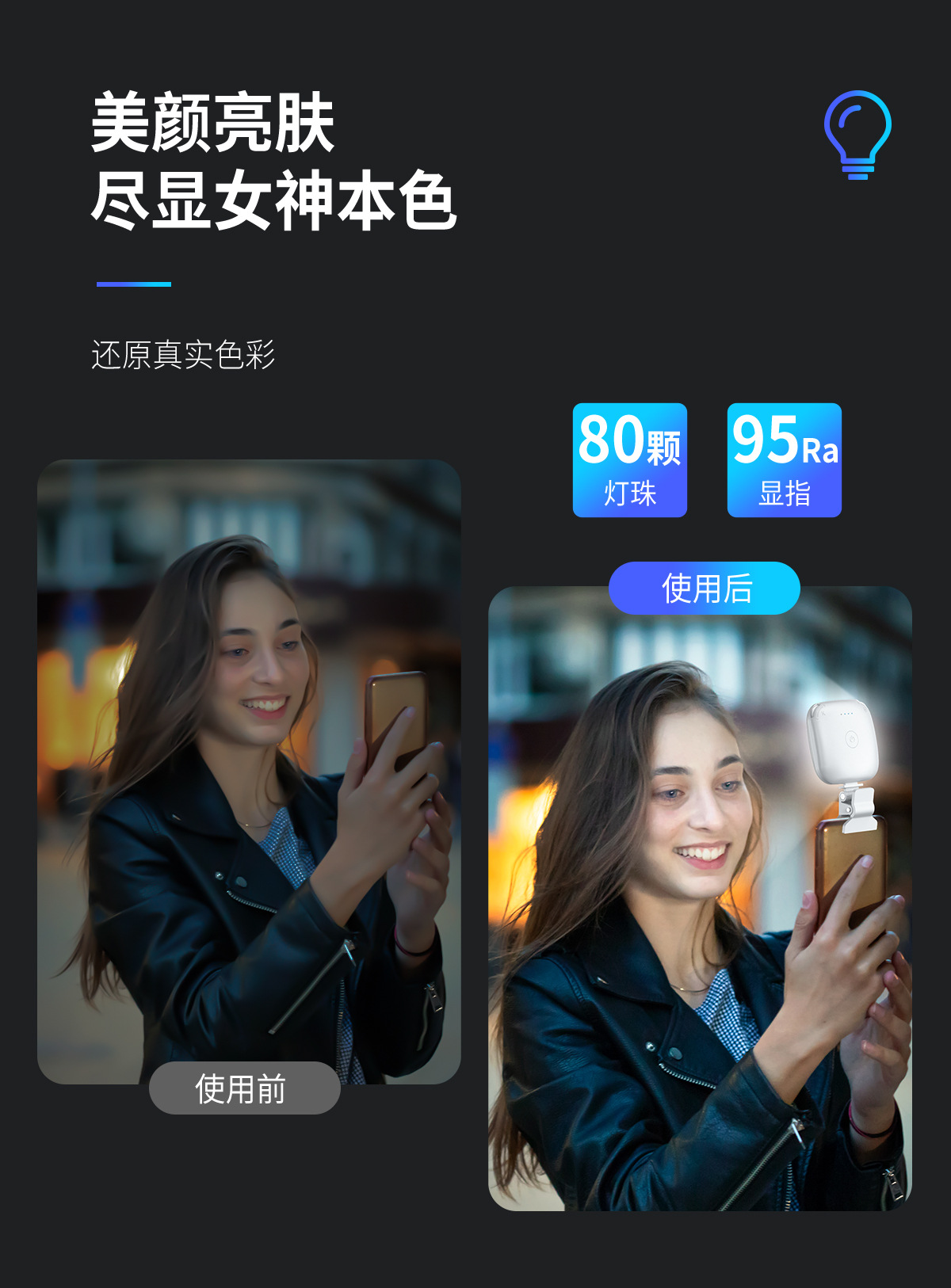 보조광 휴대폰 라이브 방송 뷰티 조명 RGB 포켓 라이트 풀컬러 LED 분위기 조명 USB 충전 사진 조명스토어 가기