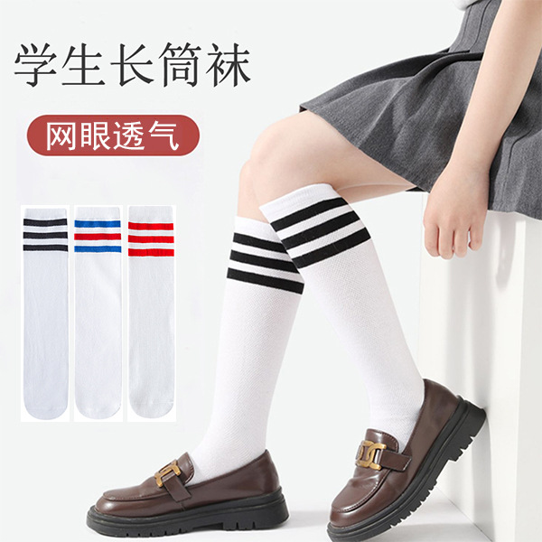 소녀 스타킹 여름 메쉬 얇은 소년의 백인 학생 축구 스타킹 무릎 위의 어린이 송아지 중간 길이 양말