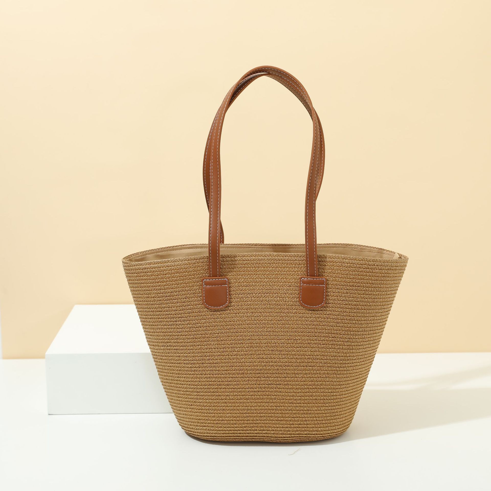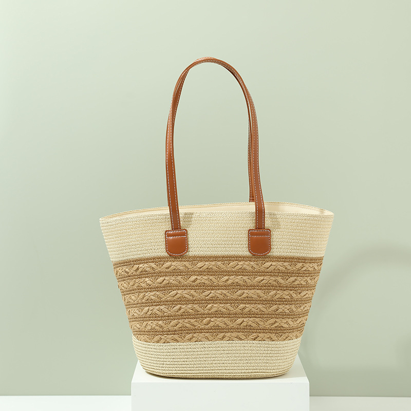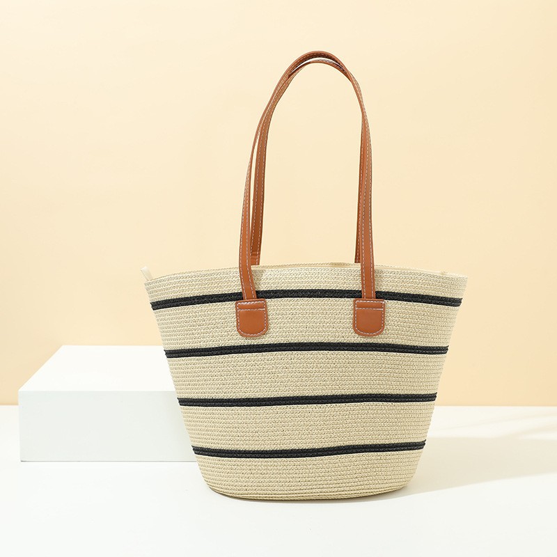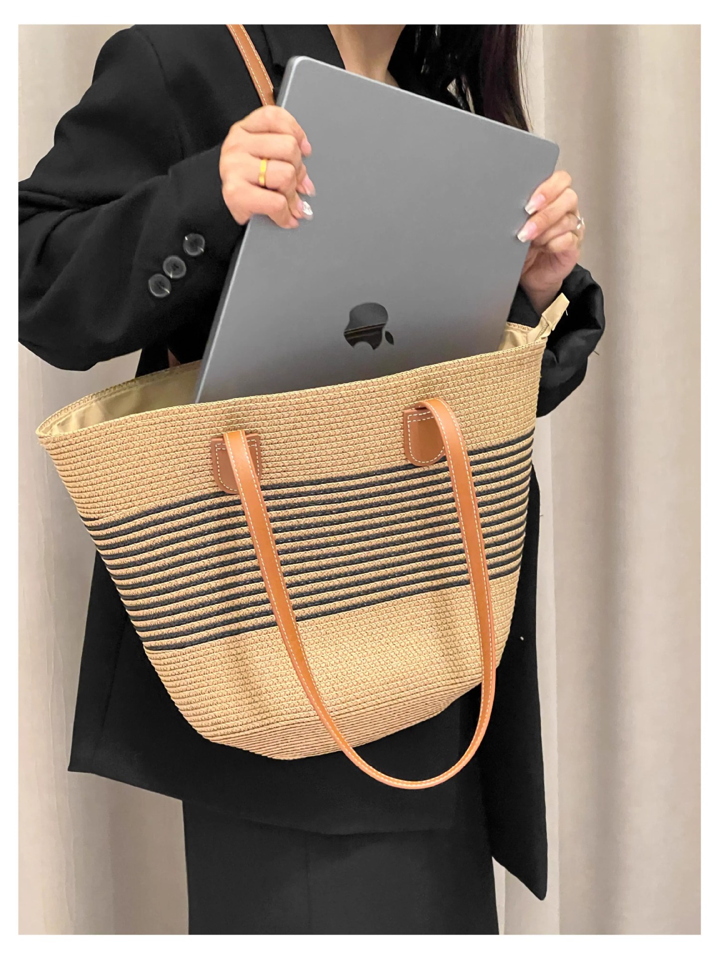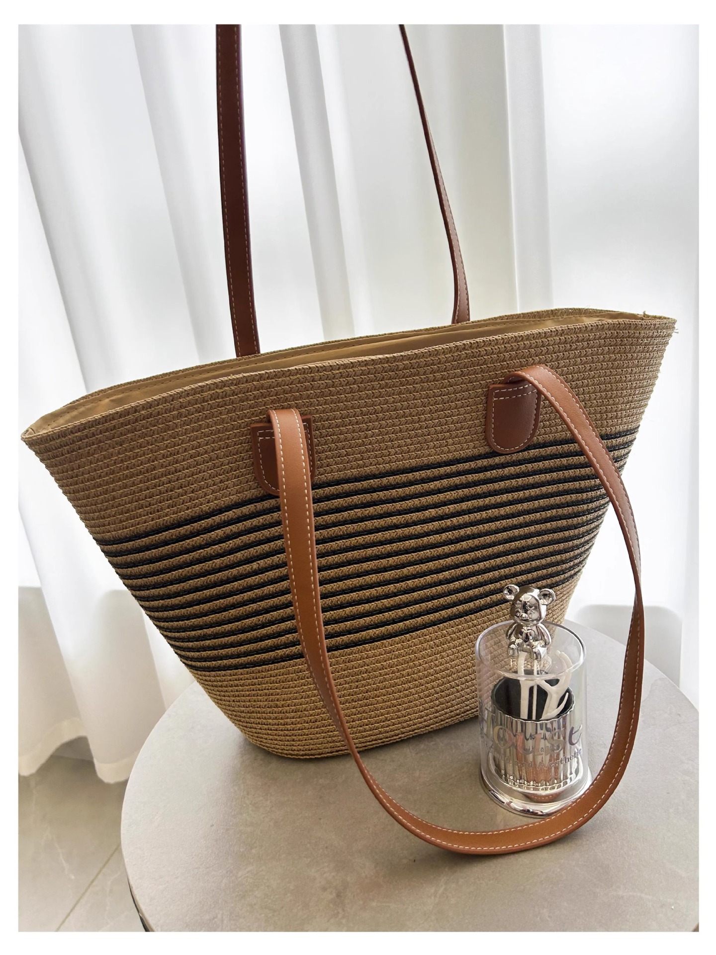 여름 줄무늬 어깨 통근 밀짚 가방 새로운 대용량 캐주얼 패션 여성 해변 비치 토트 백