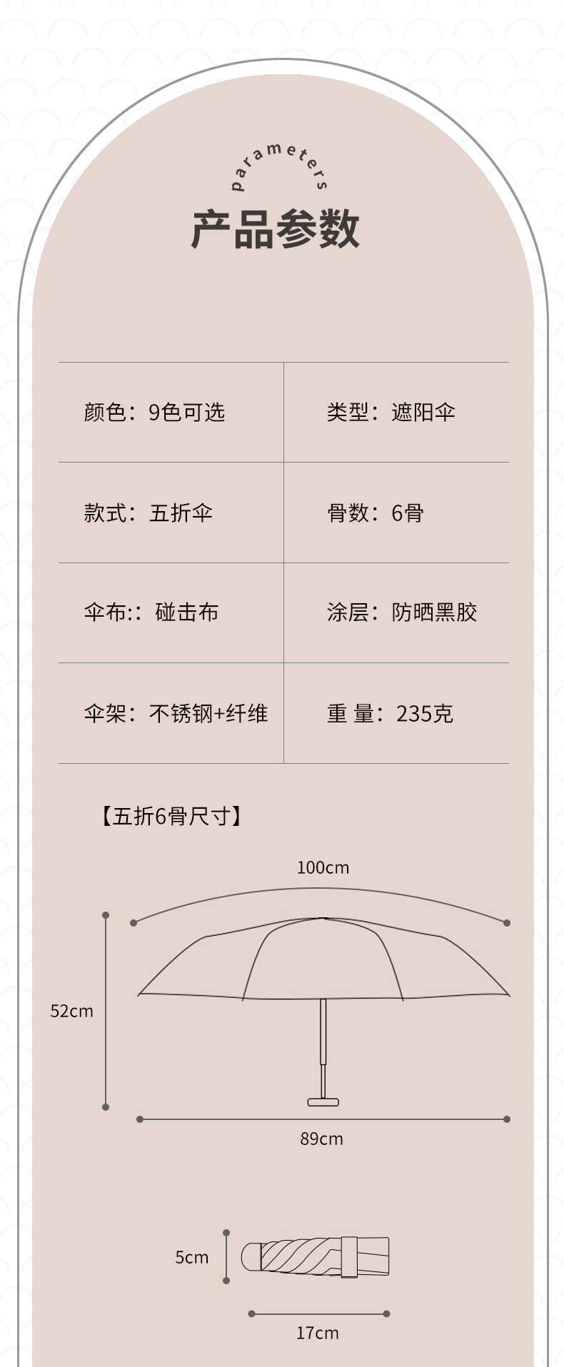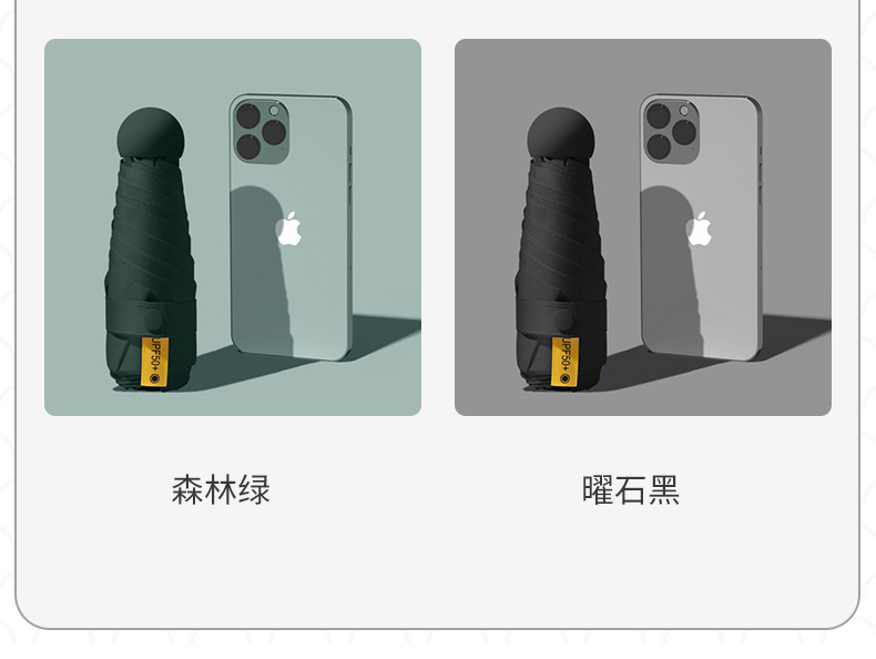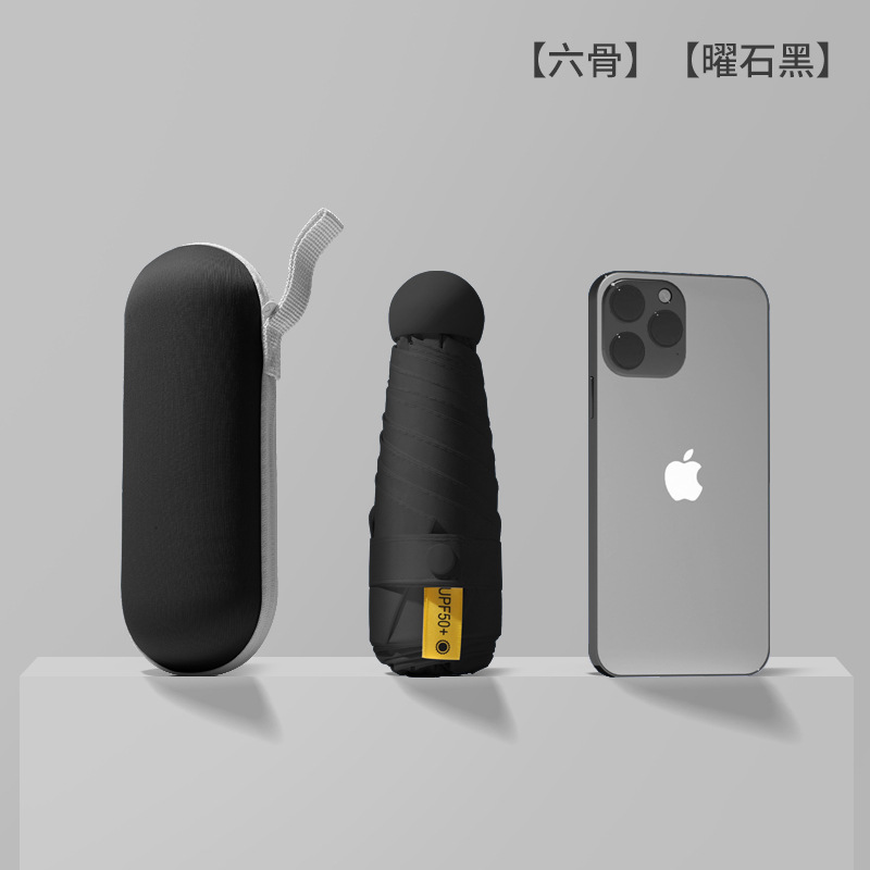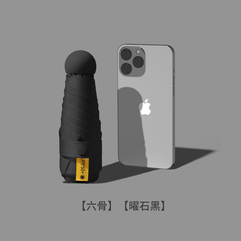 5 배 우산 작은 휴대용 여성용 검은 색 접착제 태양 방지 자외선 방지 태양 우산 초경량 포켓 캡슐 작은 우산