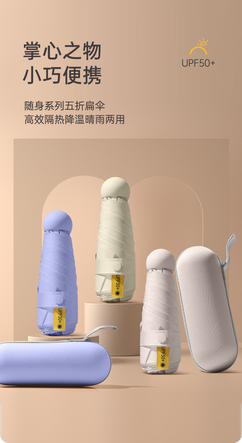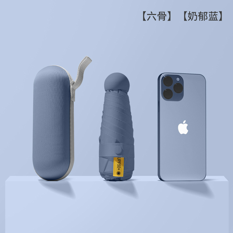 5 배 우산 작은 휴대용 여성용 검은 색 접착제 태양 방지 자외선 방지 태양 우산 초경량 포켓 캡슐 작은 우산스토어 가기