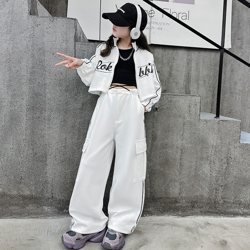 여아 재즈 댄스 의상 세트 봄 가을 힙합 스트리트 댄스 연습복 한국 스타일 루즈핏 스트리트 스포츠 팬츠 322