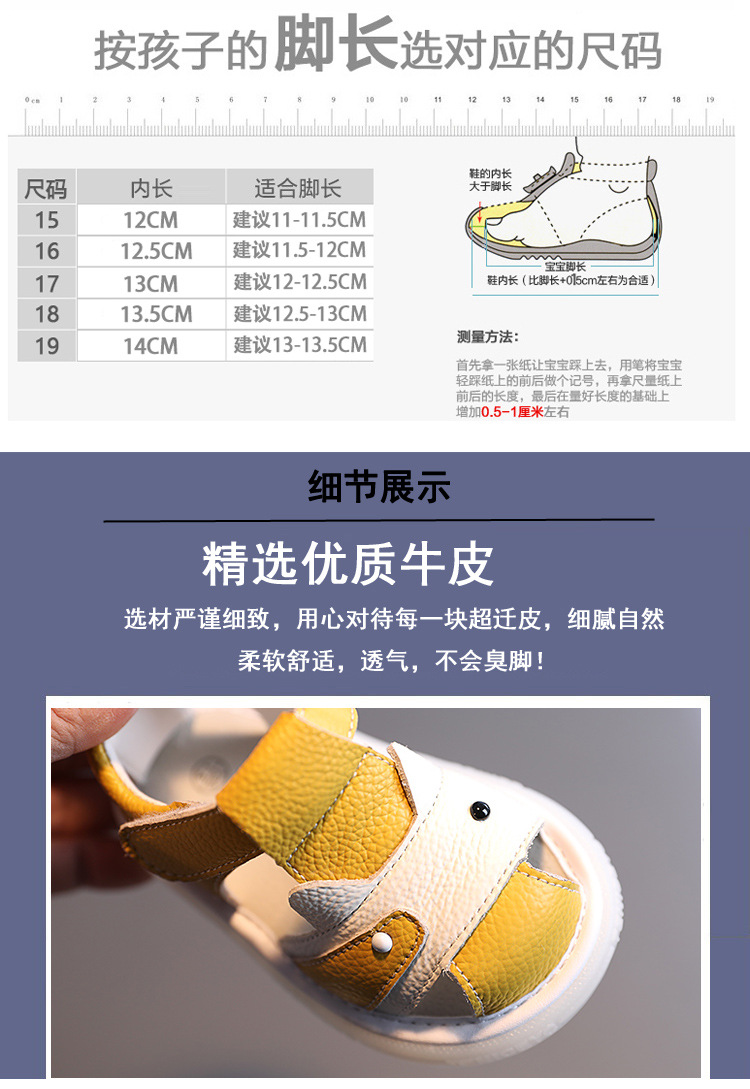 정품 가죽 소 가죽 아기 샌들 남자 0-1-3 세 아기 미끄럼 방지 여성 신발 여름 새로운 부드러운 바닥 유아 신발 미끄럼 방지스토어 가기