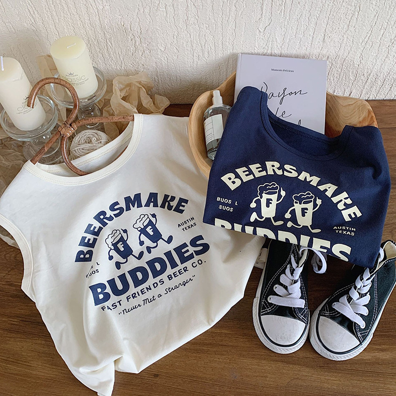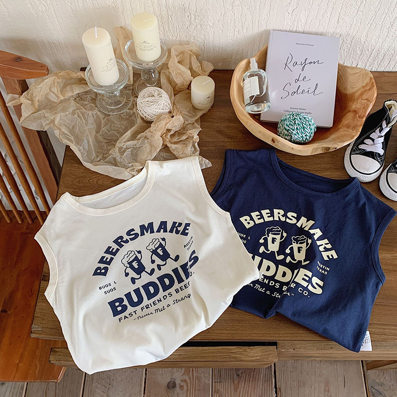 남학생 코튼 조끼 여름 얇은 어린이 만화 민소매 프린트 티셔츠 소녀 베이비 조끼 탑 여름복스토어 가기