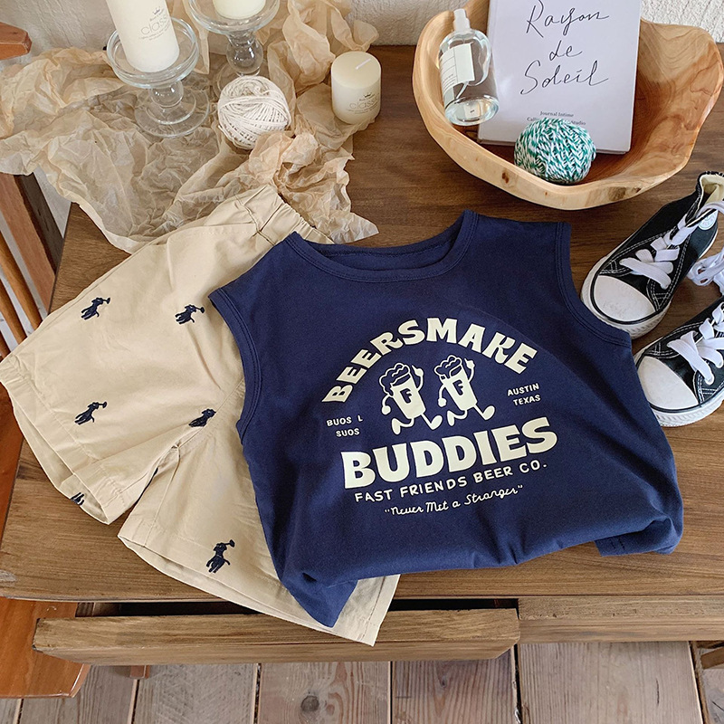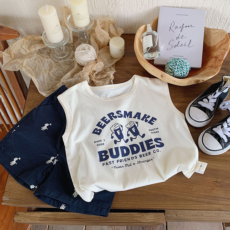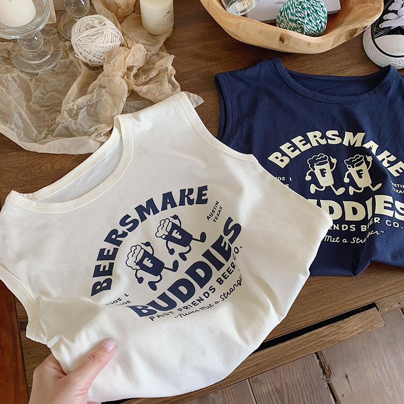 남학생 코튼 조끼 여름 얇은 어린이 만화 민소매 프린트 티셔츠 소녀 베이비 조끼 탑 여름복